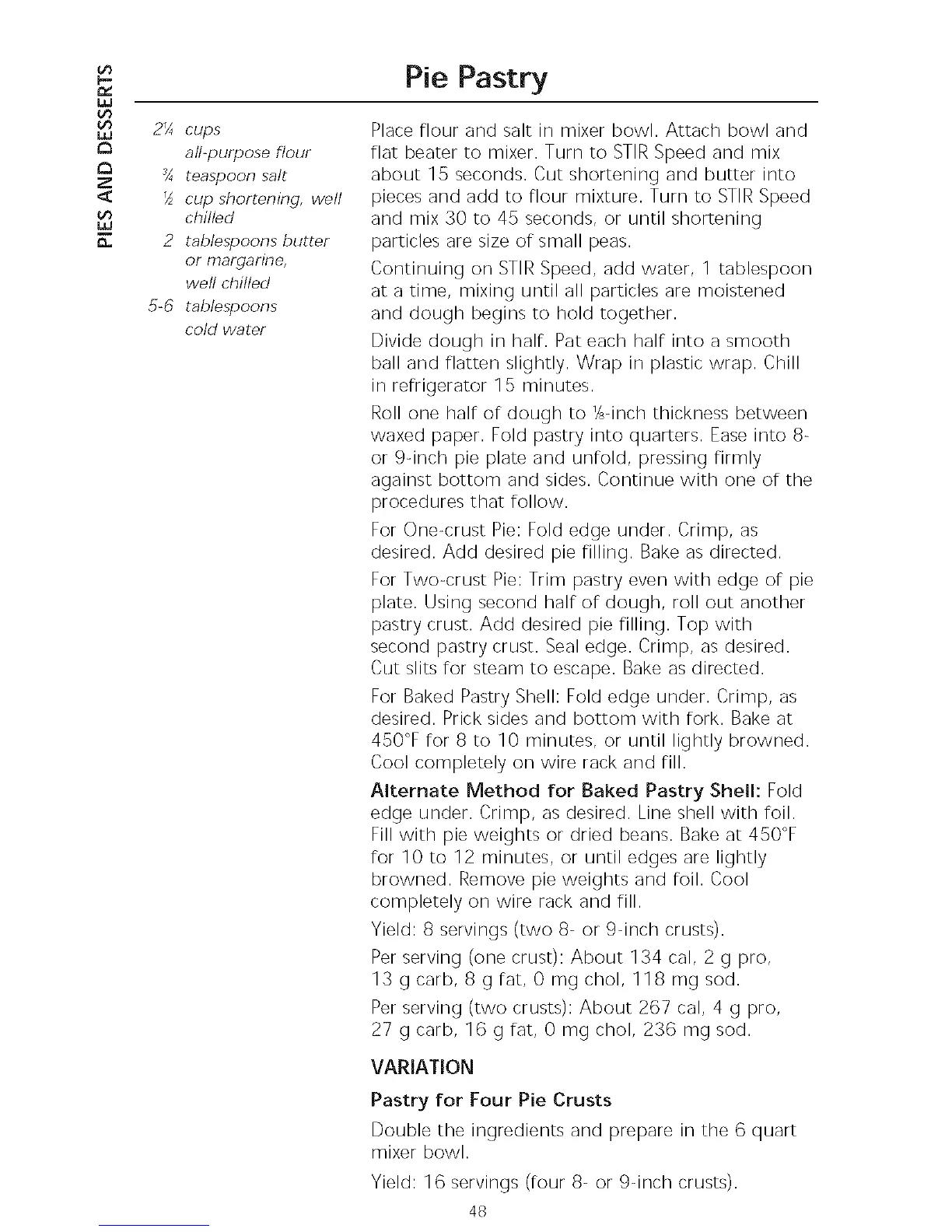 Yield: 8 servings (two 8- or 9-inch crusts).