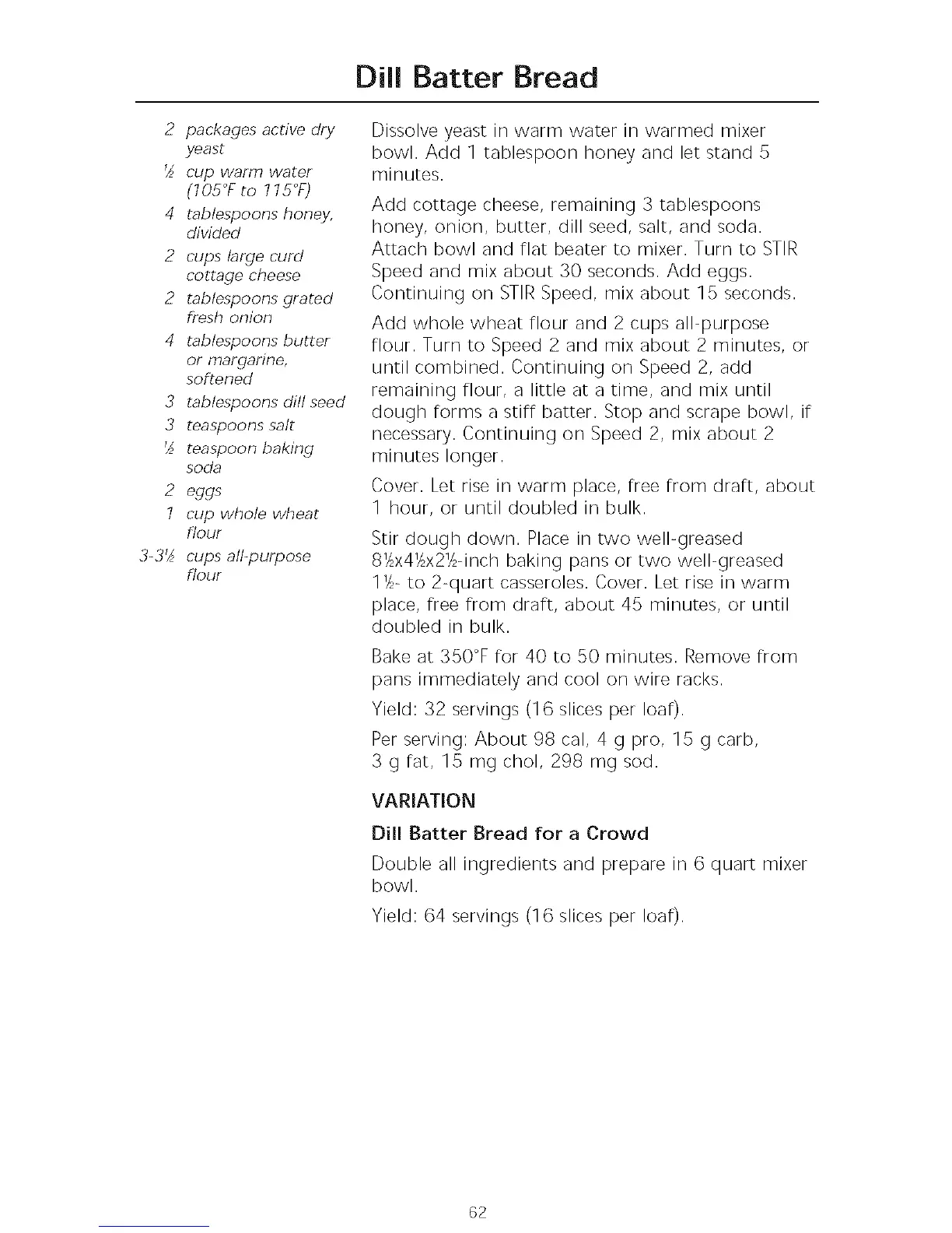 flour. Turn to Speed 2 and mix about 2 minutes, or