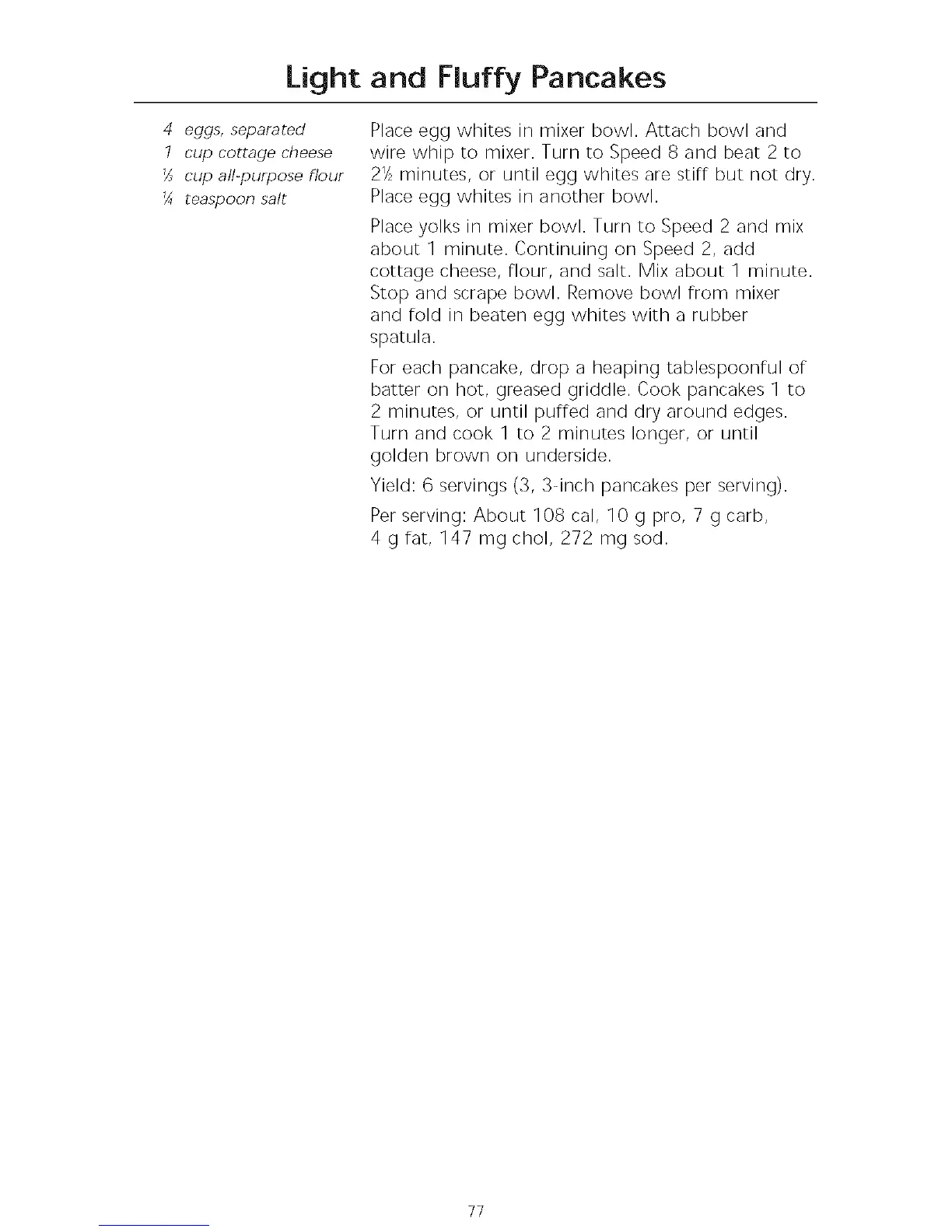 Yield: 6 servings (3, 3-inch pancakes per serving).