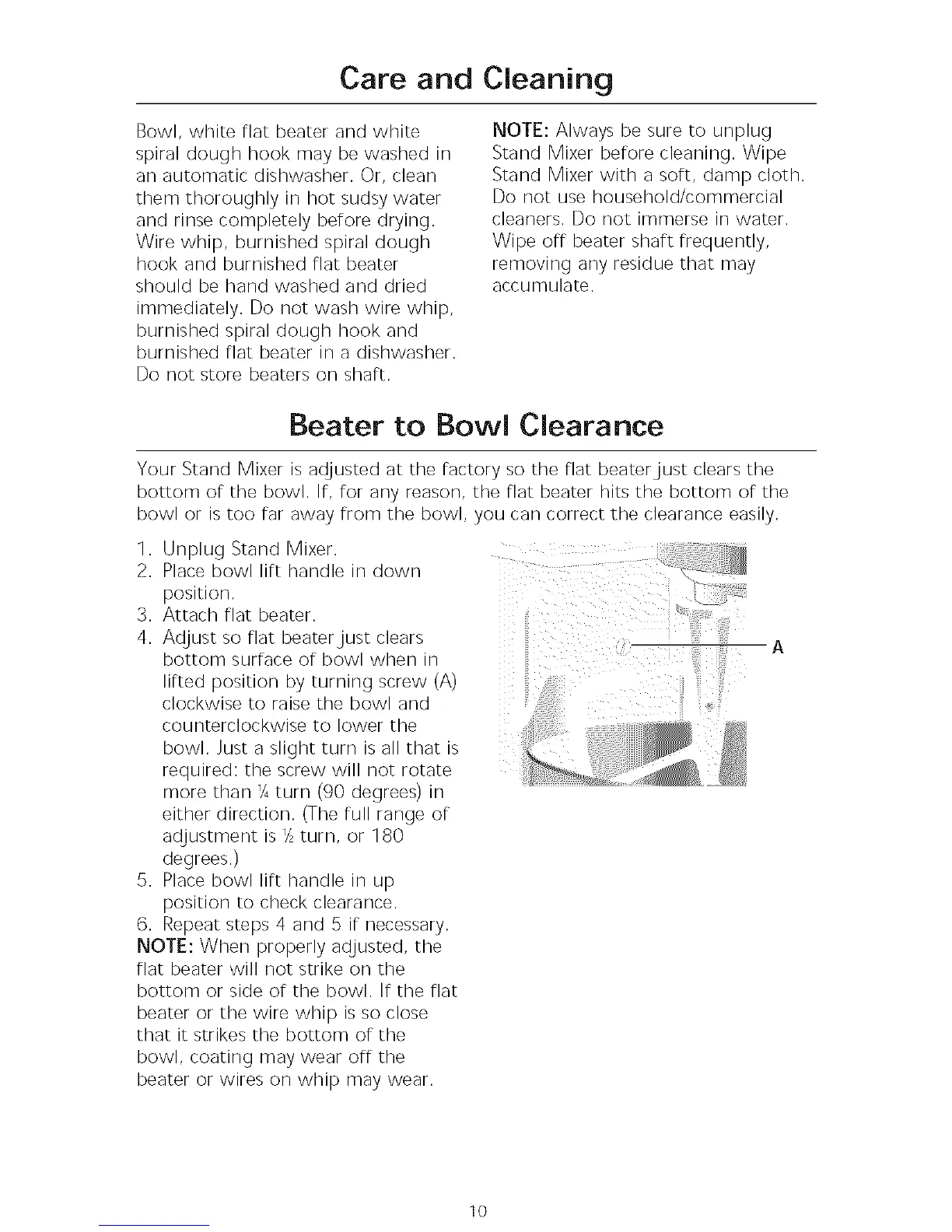 Your Stand Mixer is adjusted at the factory so the flat beater just clears the