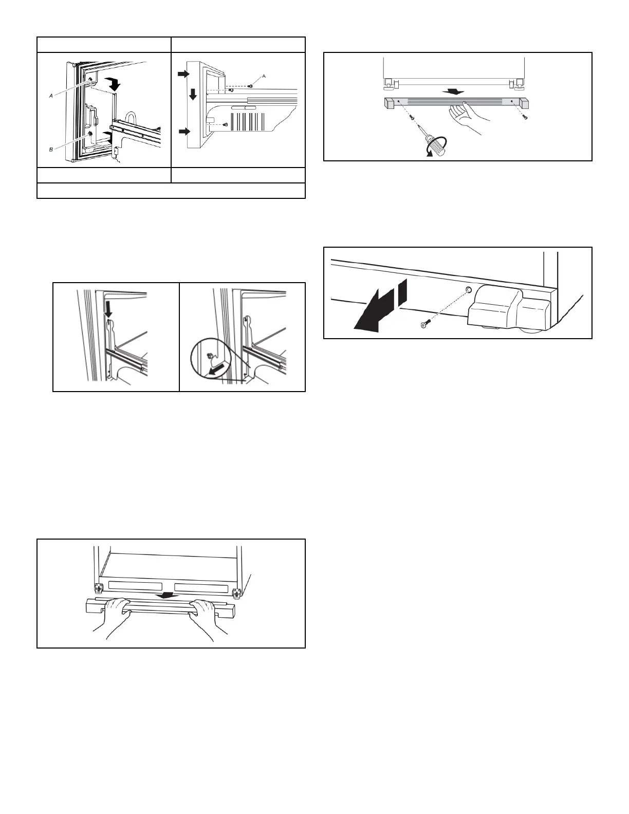 � Remove the two screws fastening the base grille to the cabinet