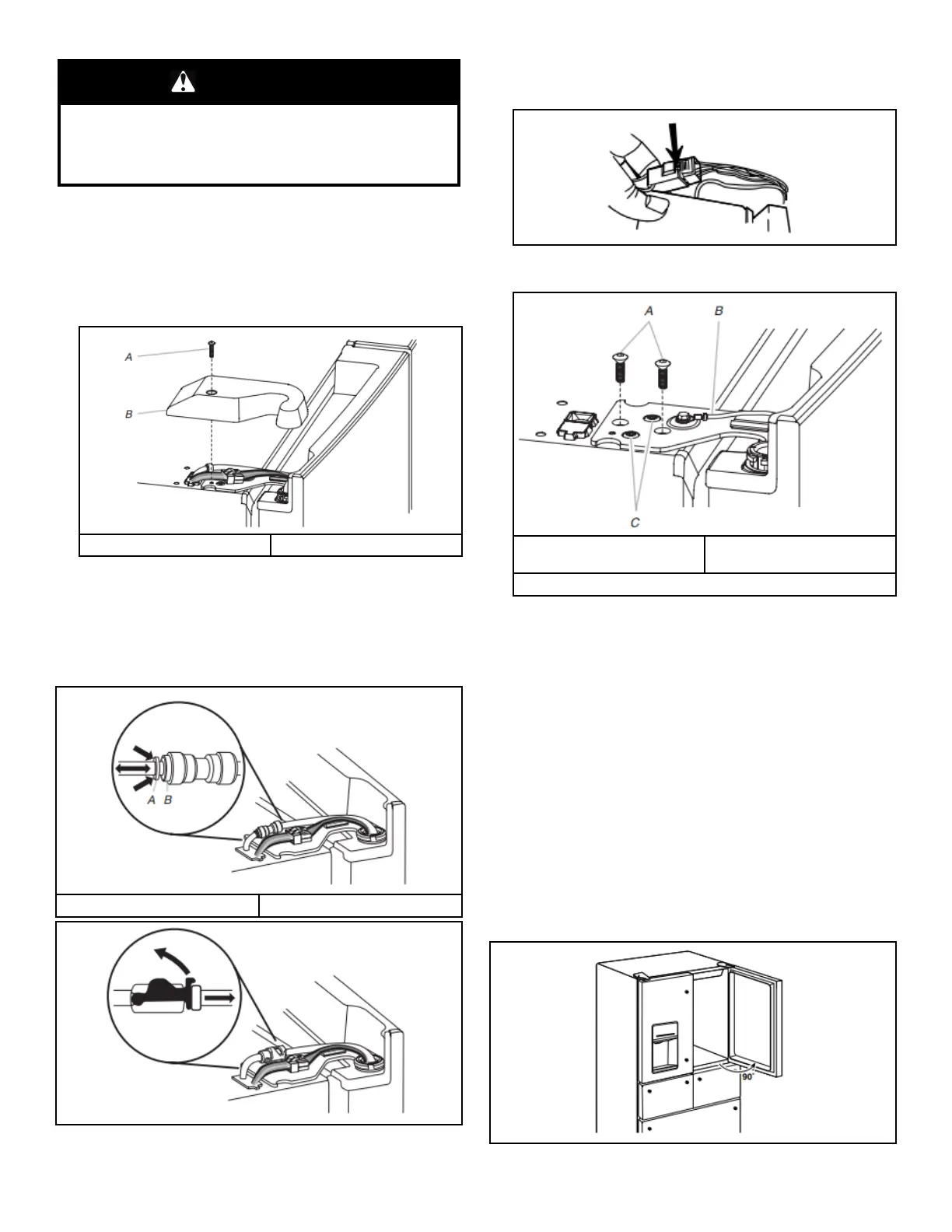 4. Lift the refrigerator door from the bottom hinge pin. The top