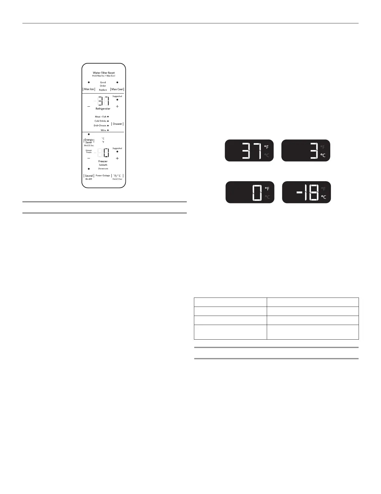 Freezer set point range: -6°F to 5°F (-22°C to -15°C)