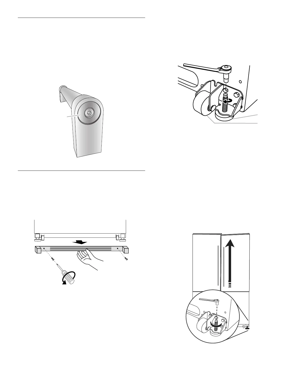 vis de nivellement dans le sens antihoraire. Les roulettes