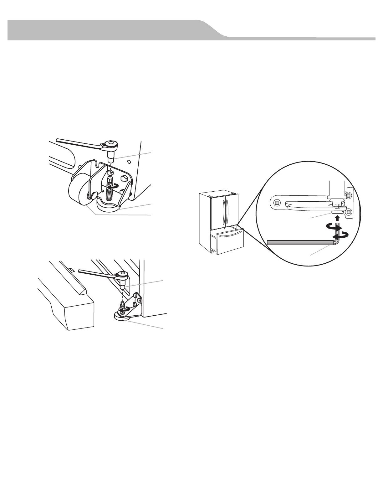 ■ Open the freezer drawer. Use a 1/4" hex driver to turn