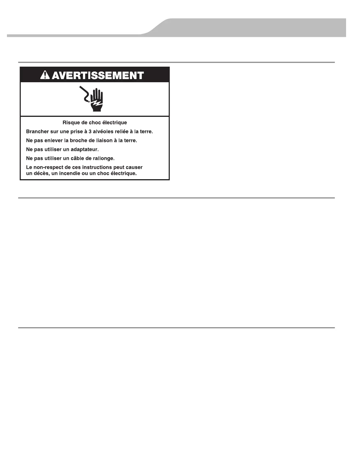 le réfrigérateur uniquement. Utiliser une prise de courant dont