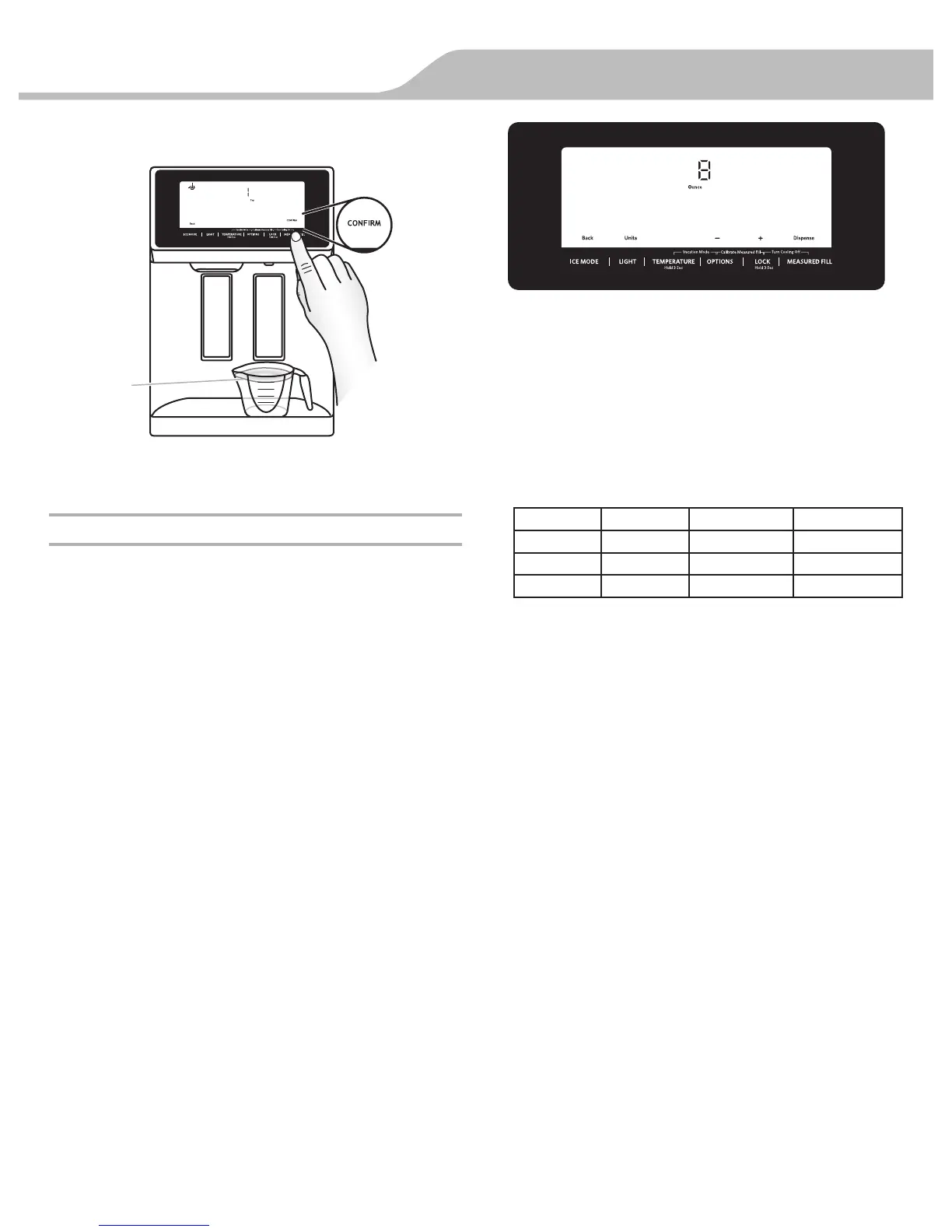 unit is ounces. To switch to cups or liters, press the LIGHT