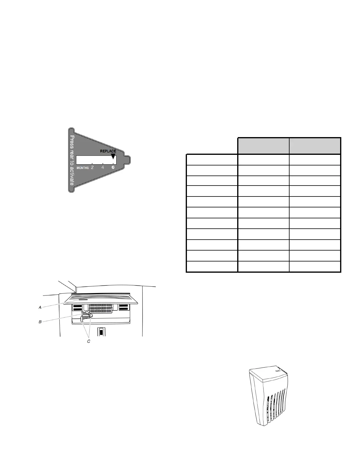 The disposable air filter should be replaced every 6 months, when