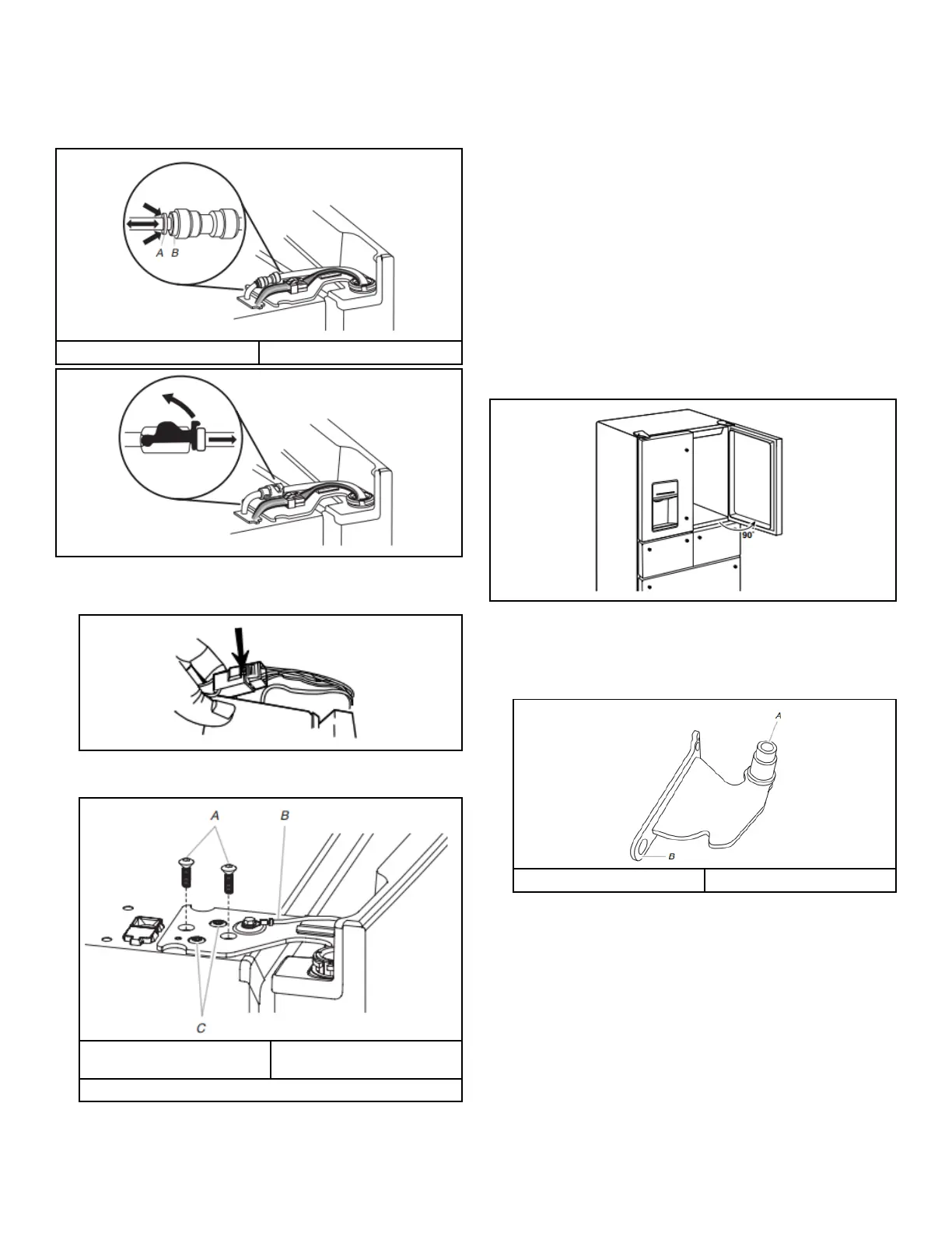 NOTE: The water dispenser tubing remains attached to the left-