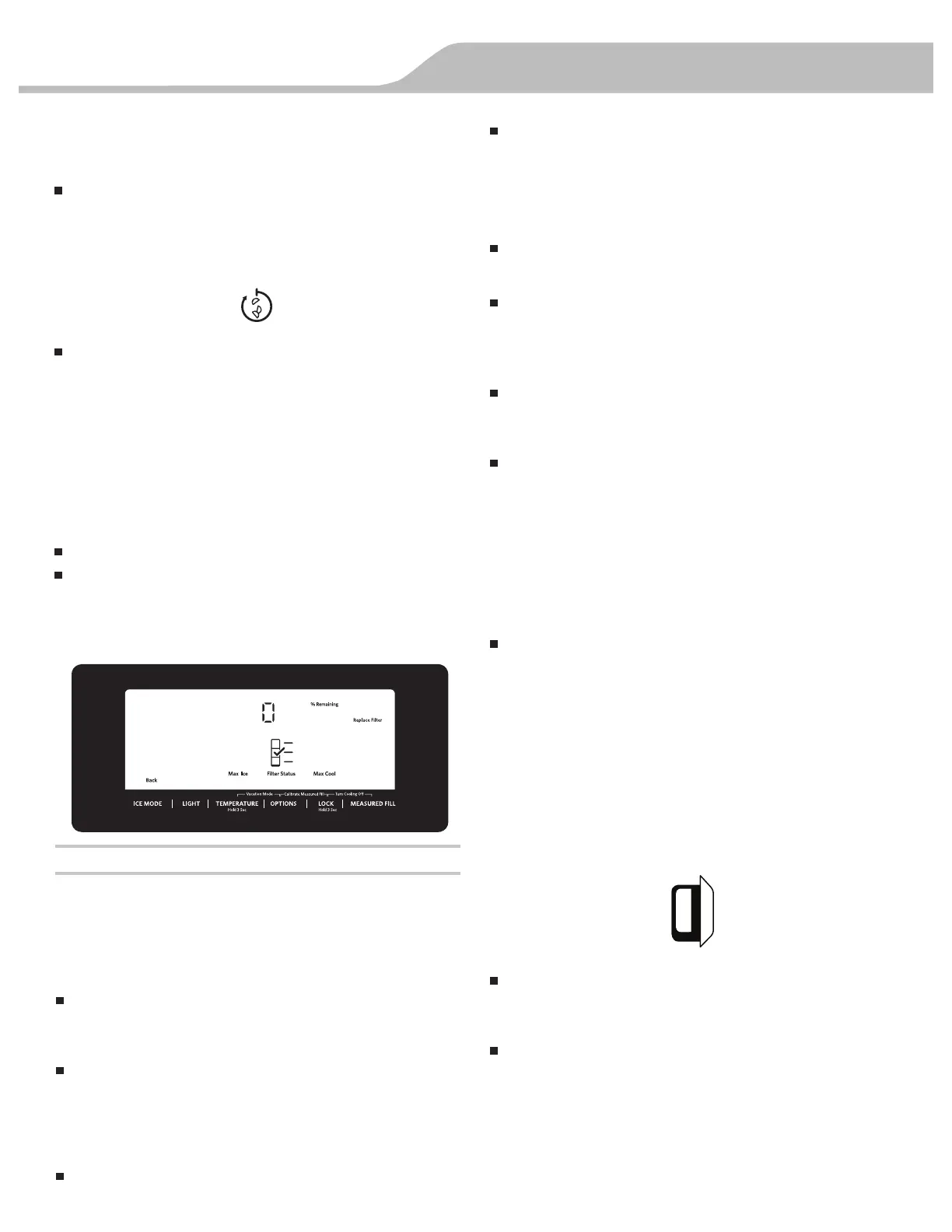 but the interior and dispenser lights turn off. Sounds, alarms, and
