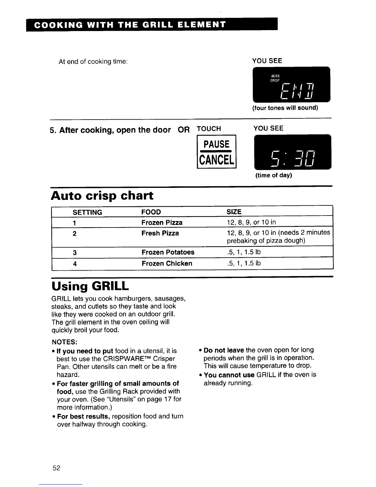 KitchenAid Krisp - Auto Crisp Chart; Using GRILL