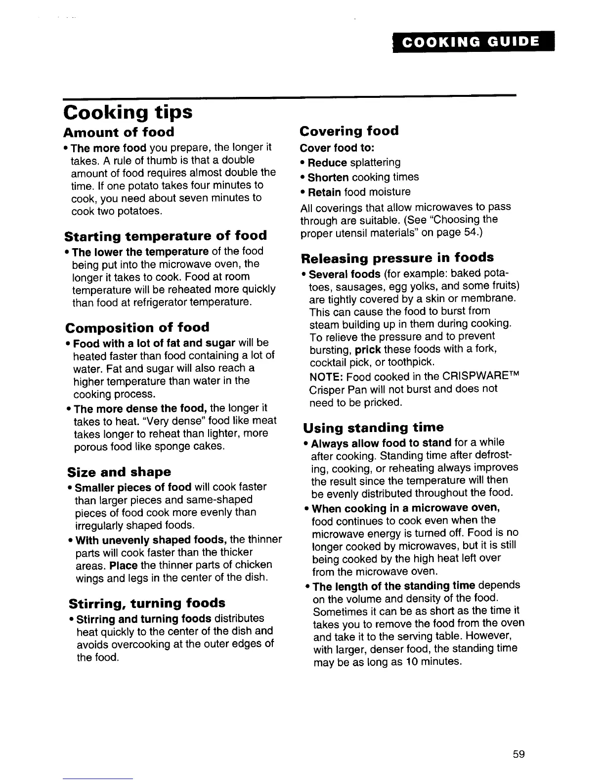 KitchenAid Krisp - Cooking Tips; Amount of Food; Starting Temperature of Food; Composition of Food