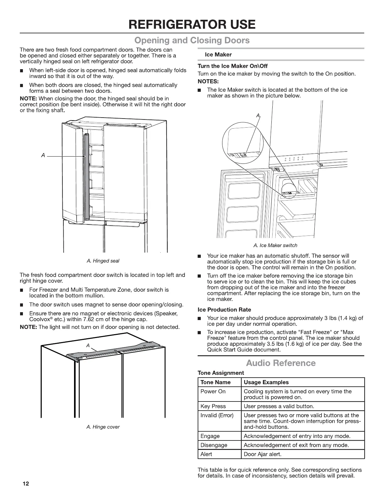 KitchenAid KRQC506MPS - REFRIGERATOR USE; Opening and Closing Doors; Ice Maker