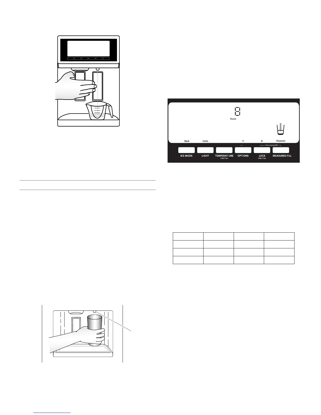 en la taza medidora, presione el botón de MEASURED FILL