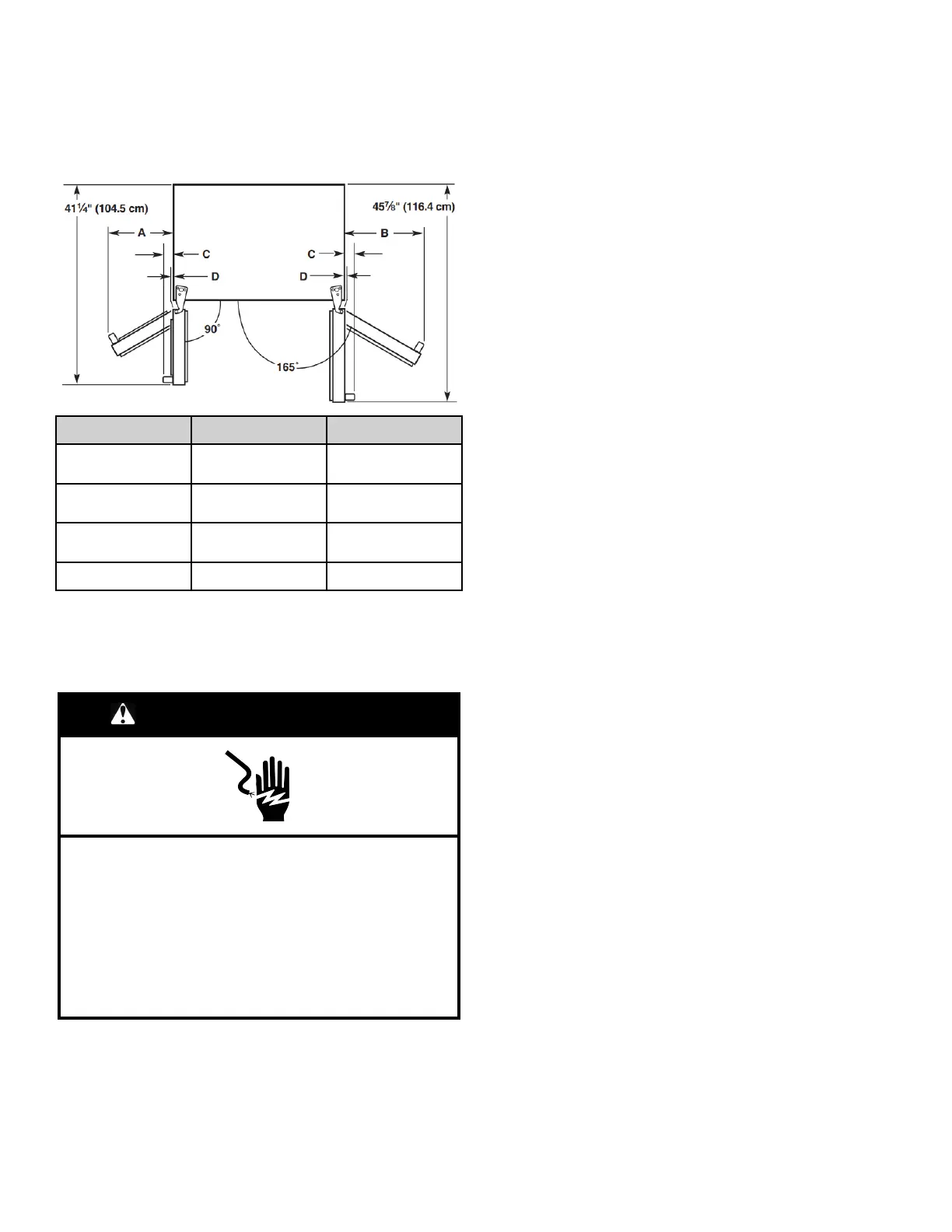 congélateur et « B », la distance nécessaire pour l’ouverture