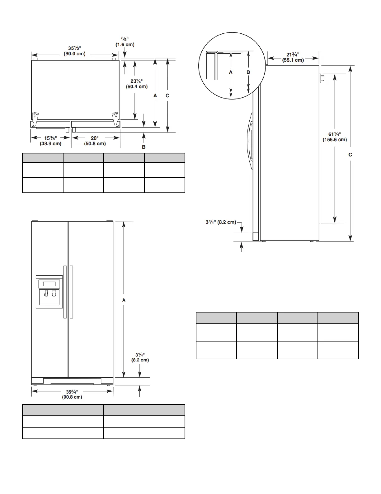 to the minimum height of 1/4" (6.35 mm) below the refrigerator.