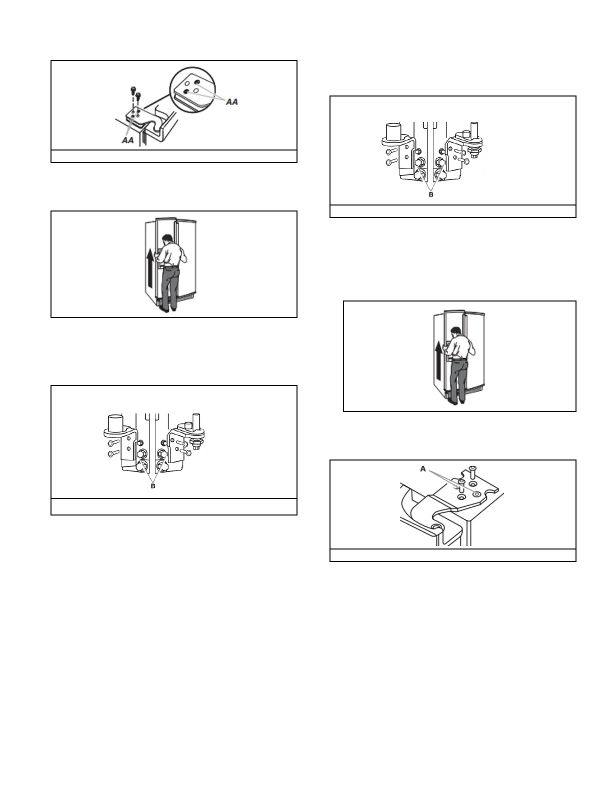1. Reinstall both bottom hinges using a 5/16" nut driver to tighten