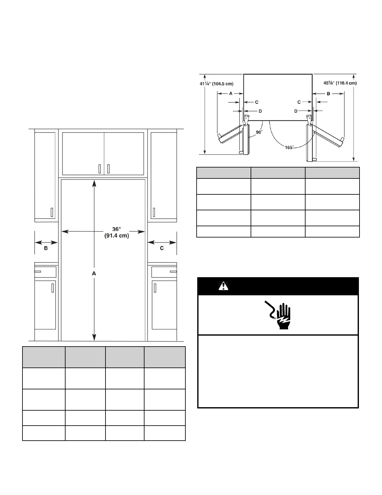 réfrigérateur, ajouter 3/4 po (19 mm) à la hauteur totale.