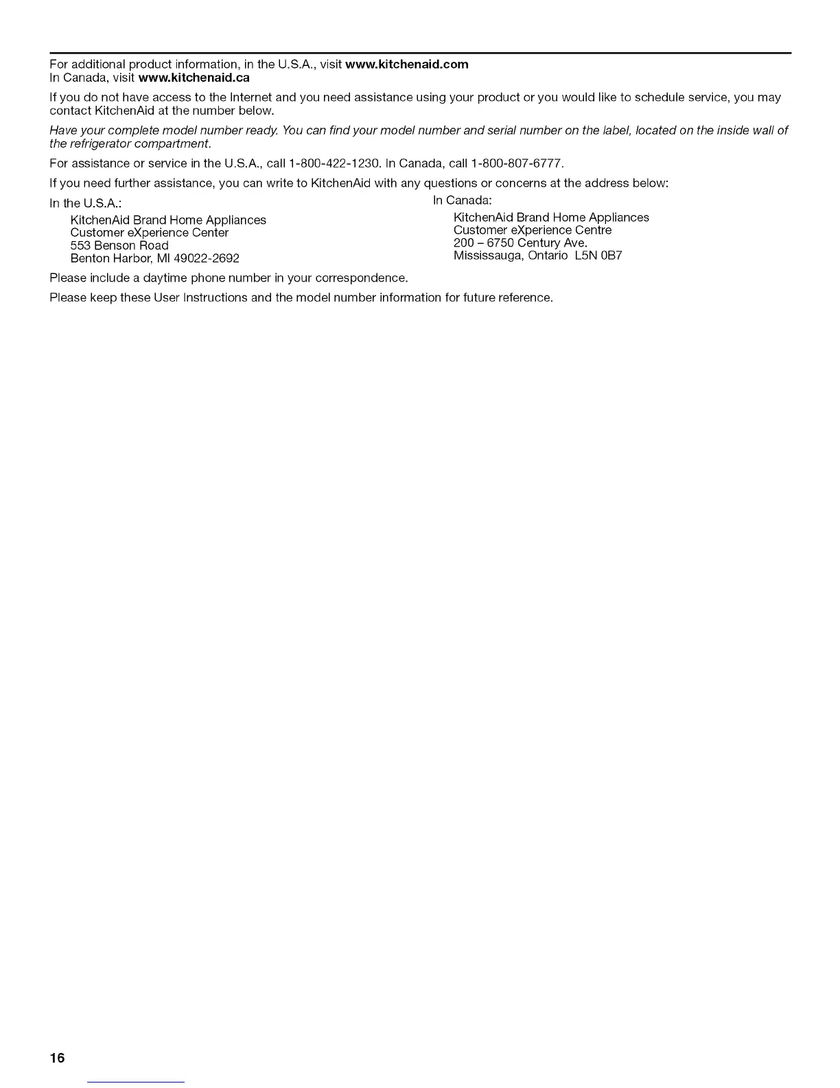 For additional product information, in the U.S.A., visit www.kitchenaid.com