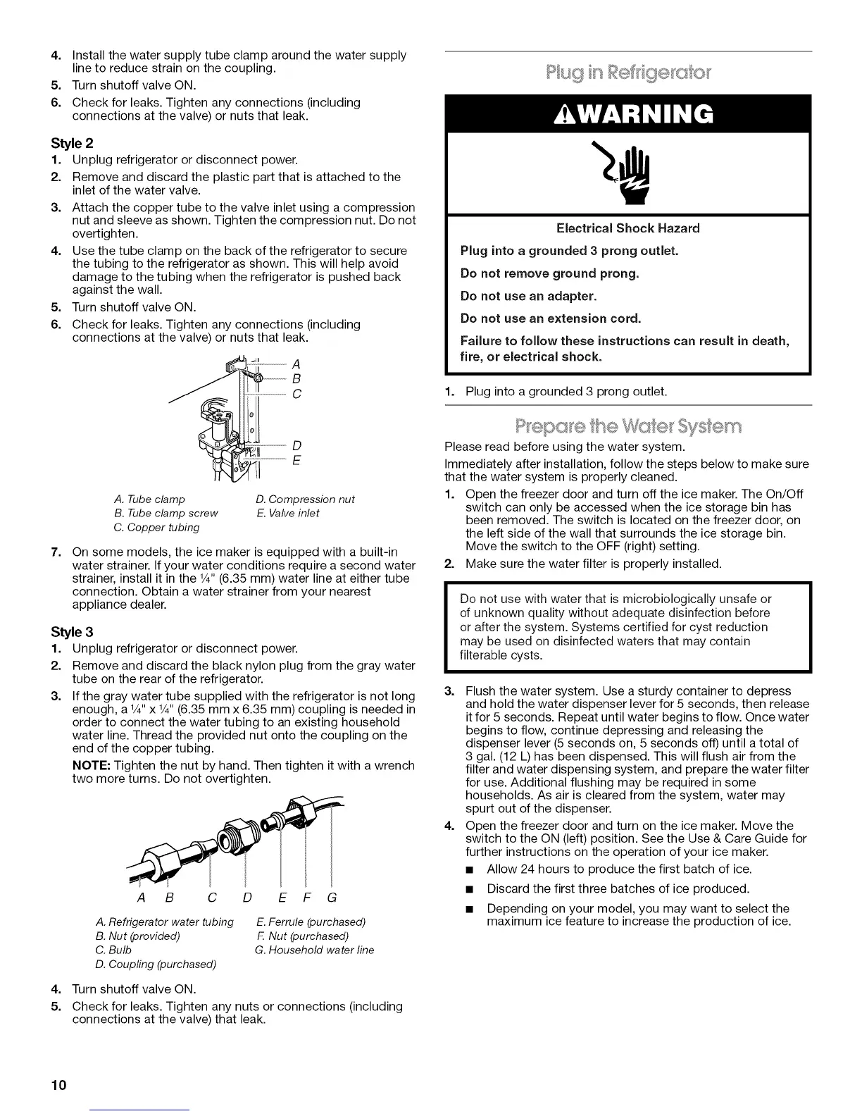 KitchenAid KSC24C8EYY02 - Plug in Refrigerator; Electrical Shock Hazard; Prepare the Water System