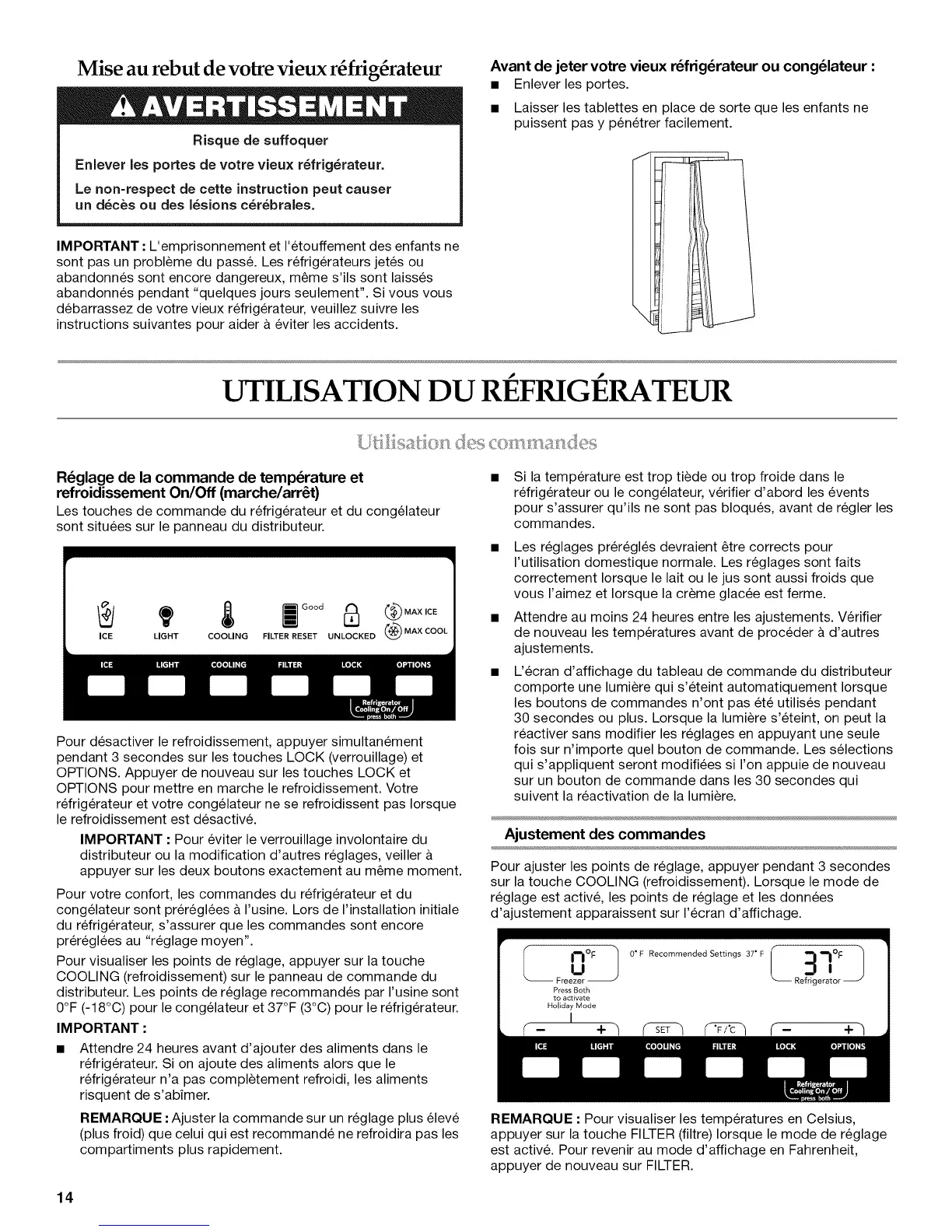 Pour votre confort, les commandes du refrigerateur et du