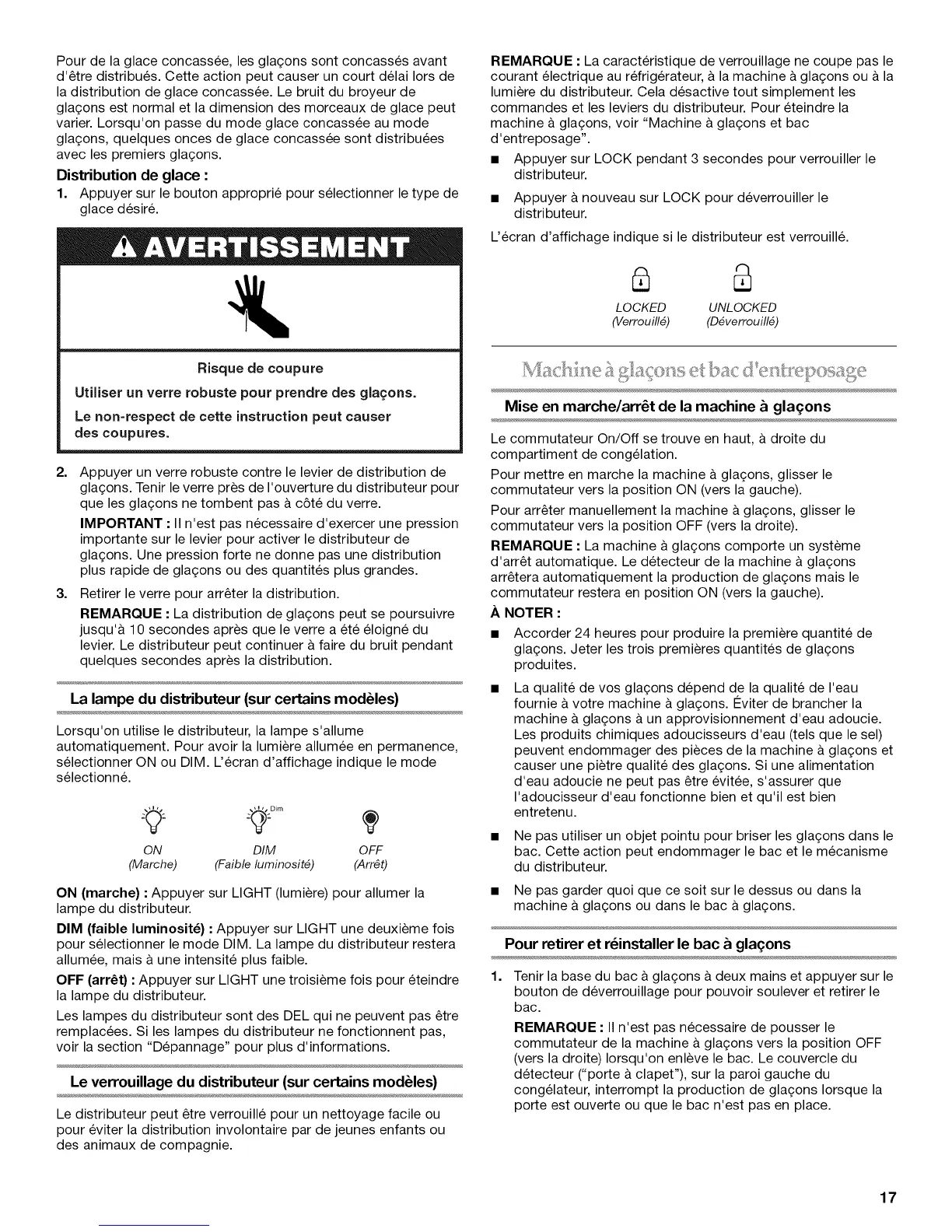 Pour retirer et r_installer le bac & glagons