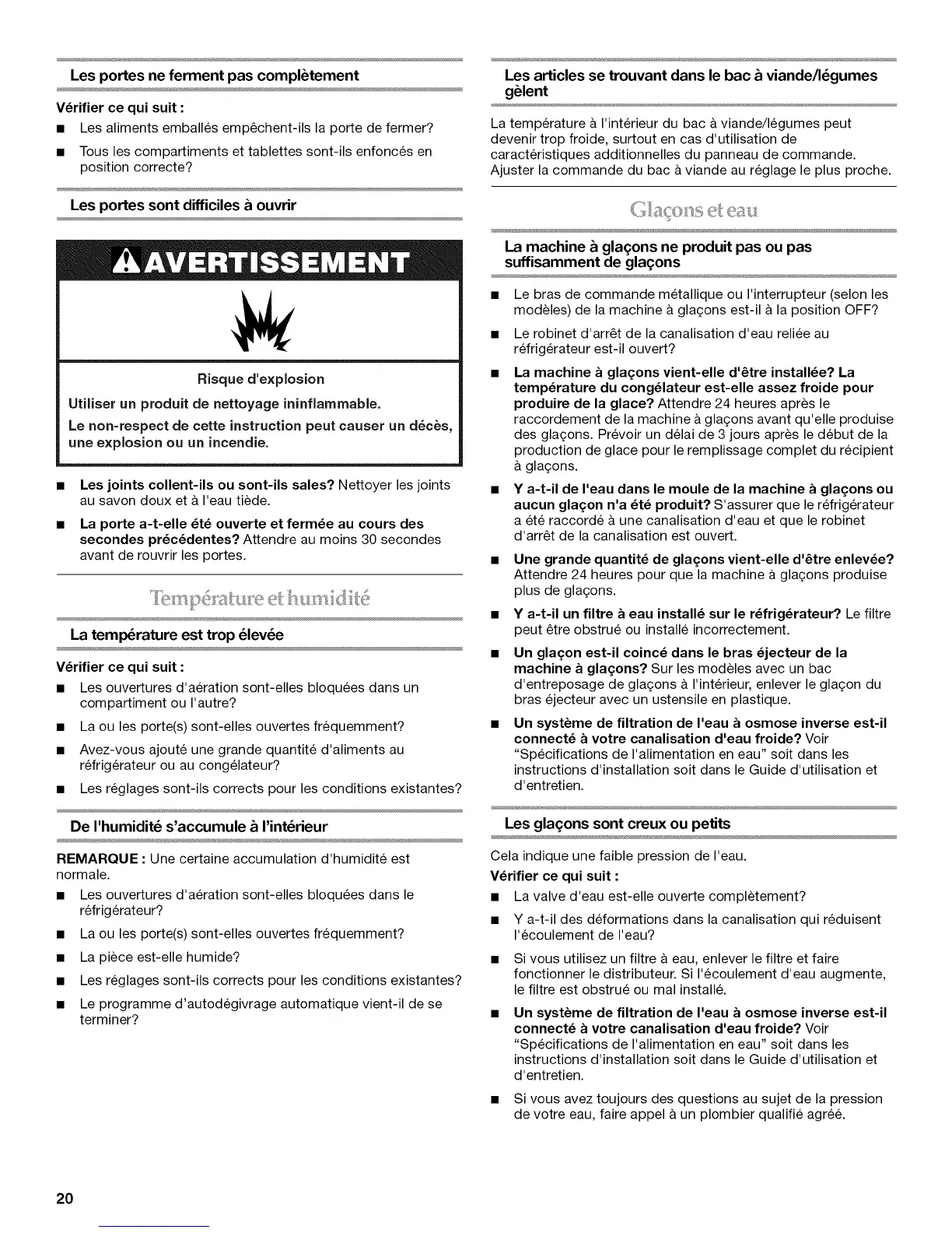 aucun glagon n'a _t_ produit? S'assurer que le refrigerateur