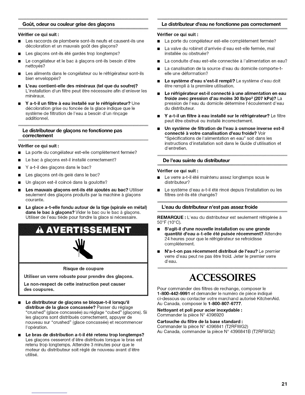 ci-dessous ou contacter votre marchand autorise KitchenAid.