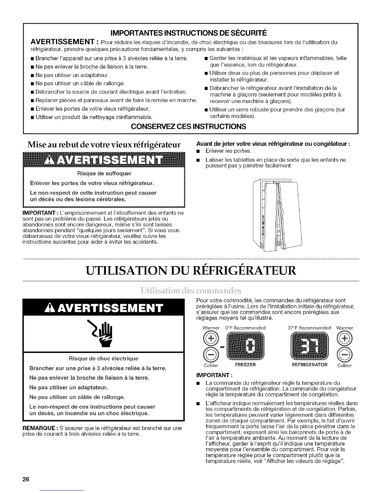 refrigerateur, prendre quelques precautions fondamentales, y compris les suivantes :