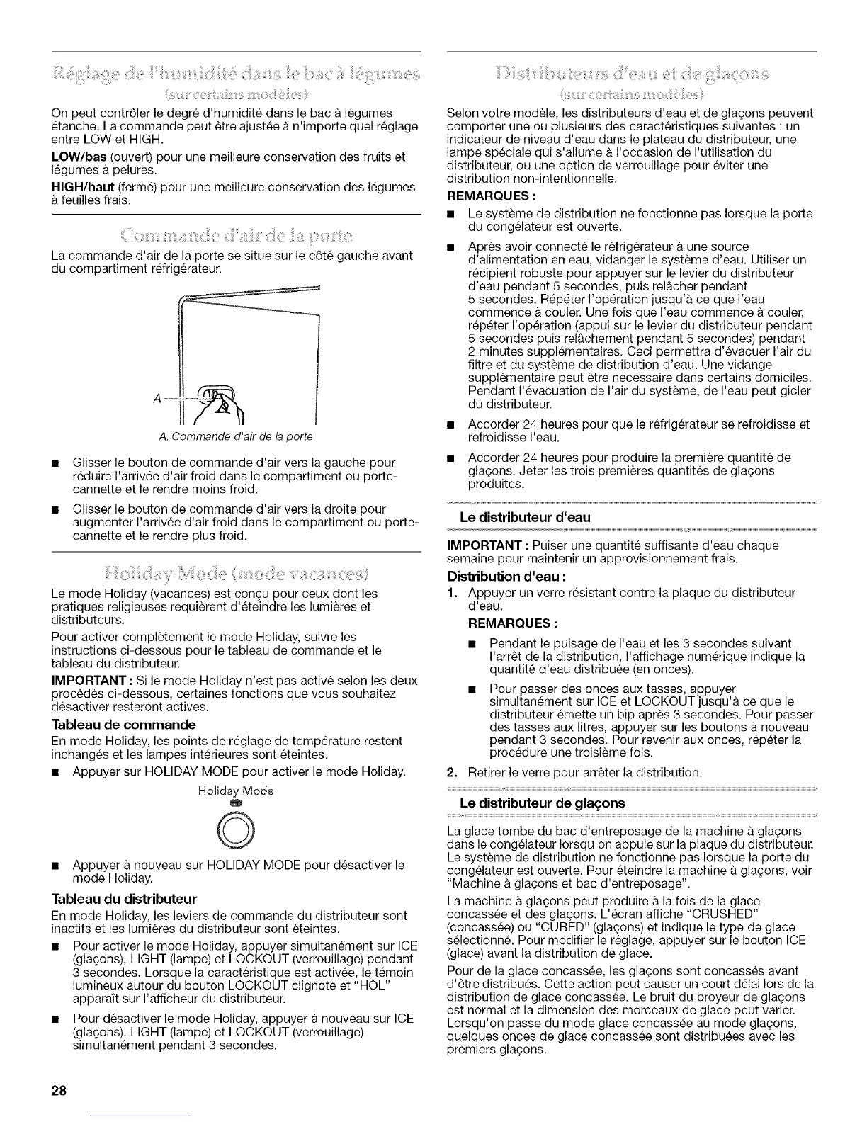 Selon votre modele, les distributeurs d'eau et de glagons peuvent