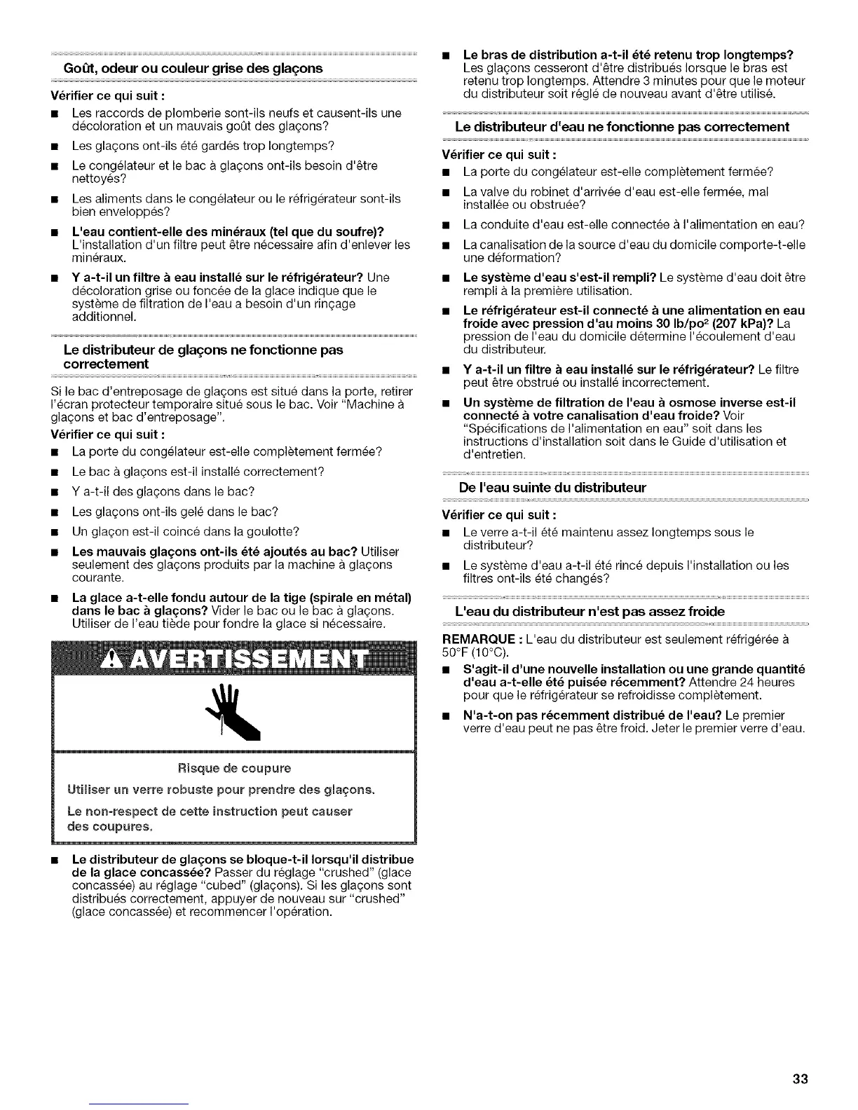 dans le bac _ gla£_ons? Vider le bac ou le bac a glagons.