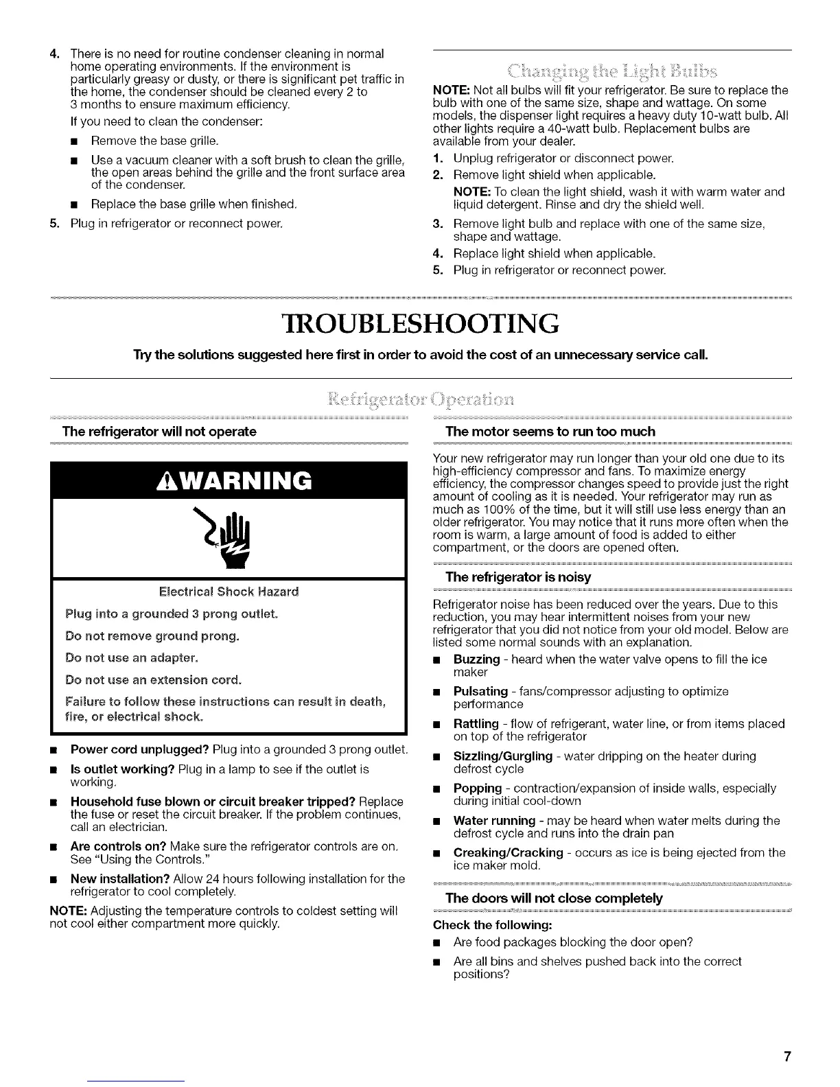 models, the dispenser light requires a heavy duty 10-watt bulb. All
