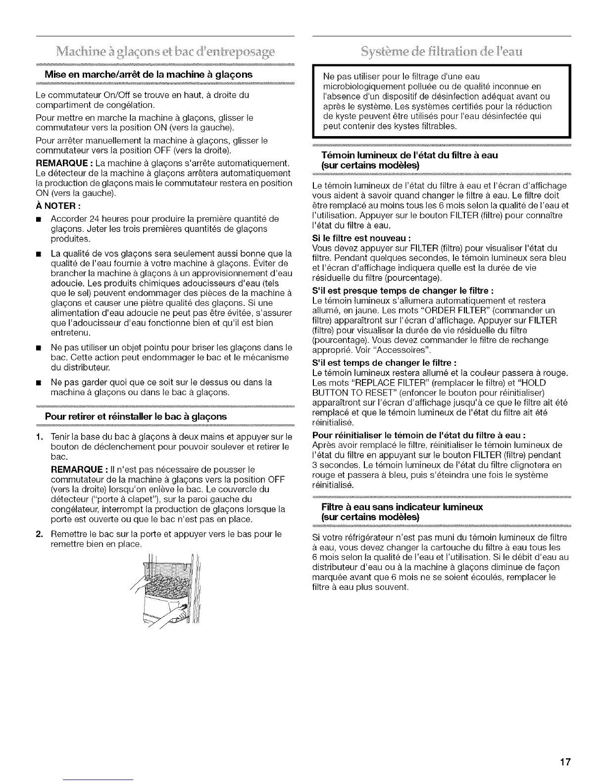 Pour retirer et r_installer le bac & glagons