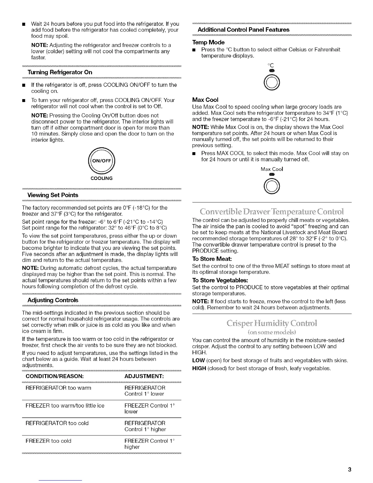 added. Max Cool sets the refrigerator temperature to 34°F (1°C)