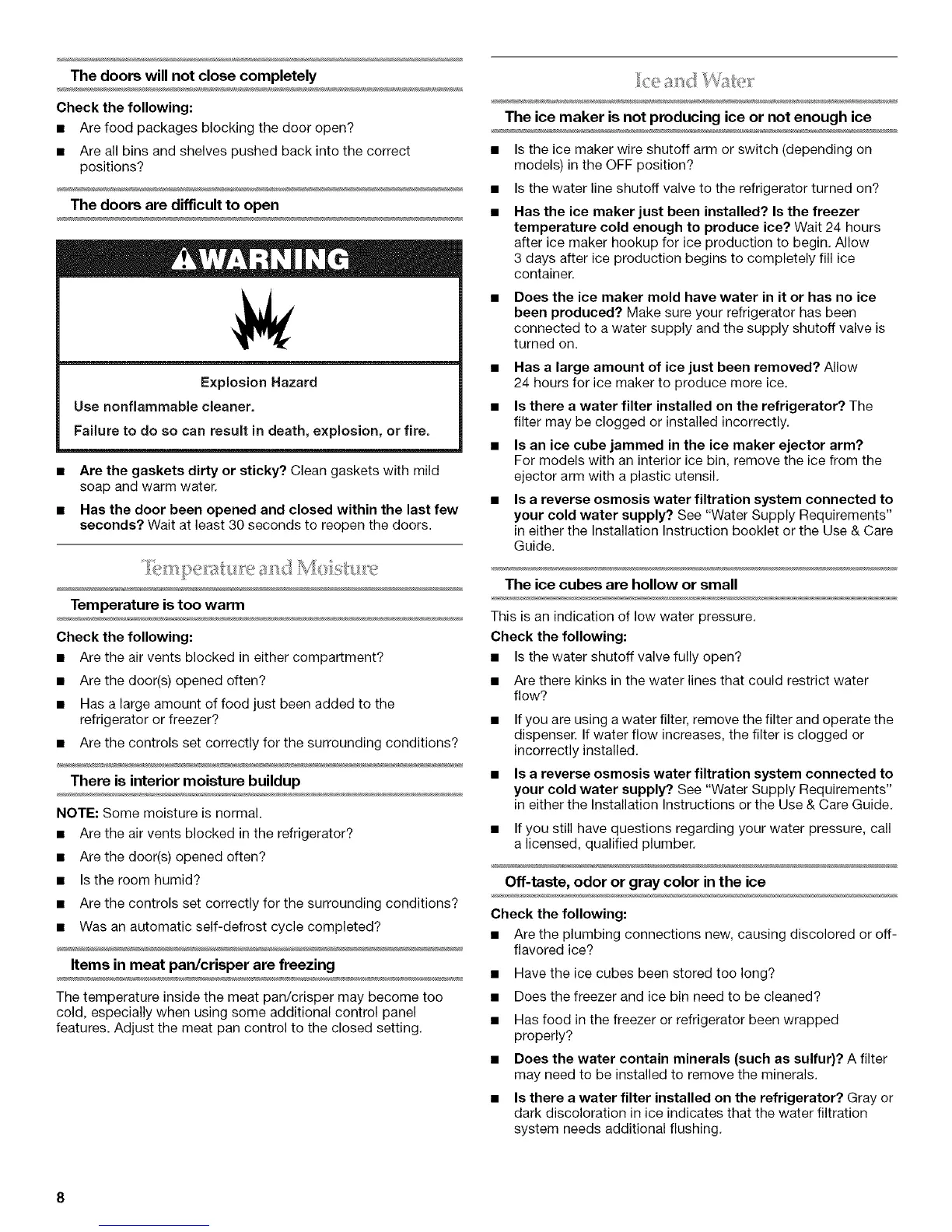 • Are the gaskets dirty or sticky? Clean gaskets with mild