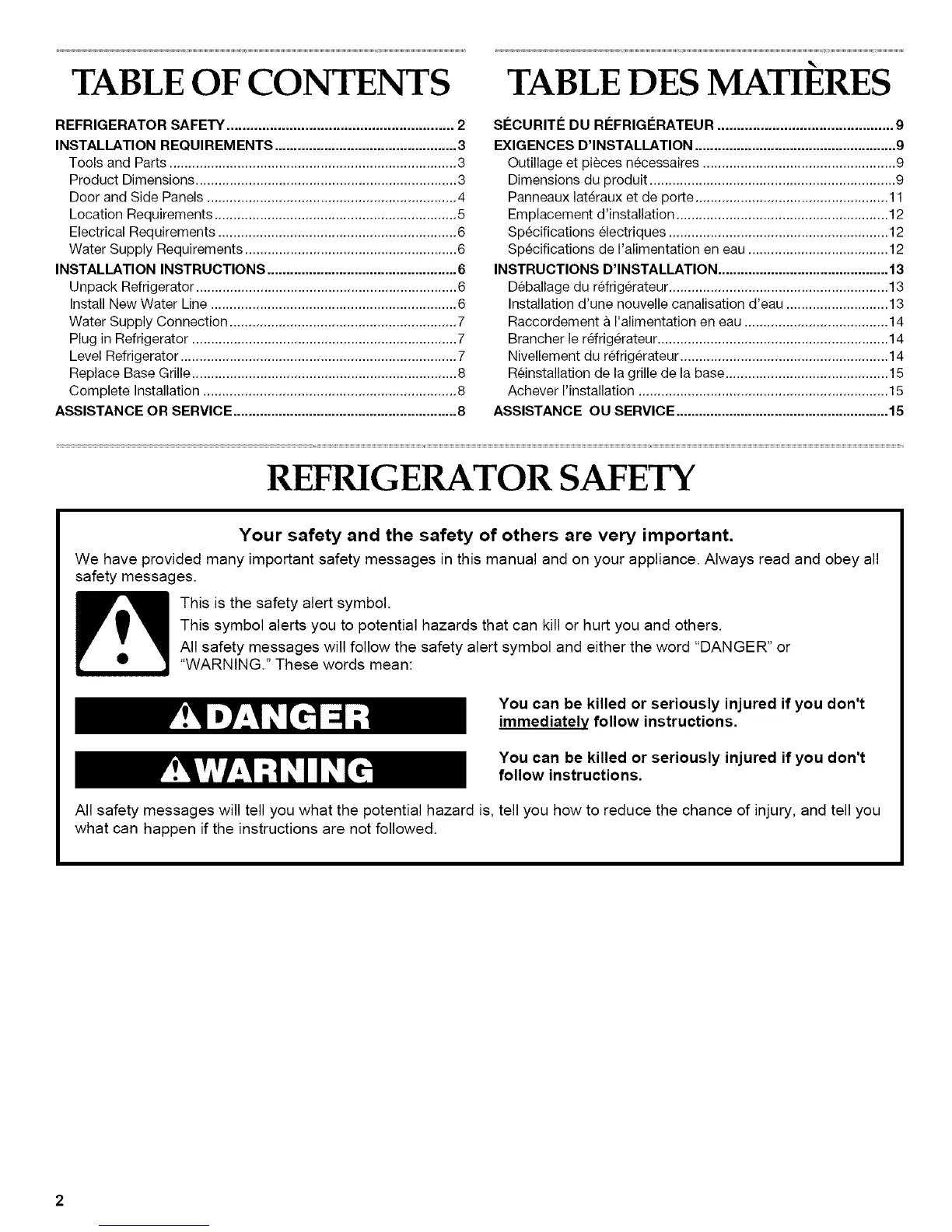 REFRIGERATOR SAFETY .......................................................... 2