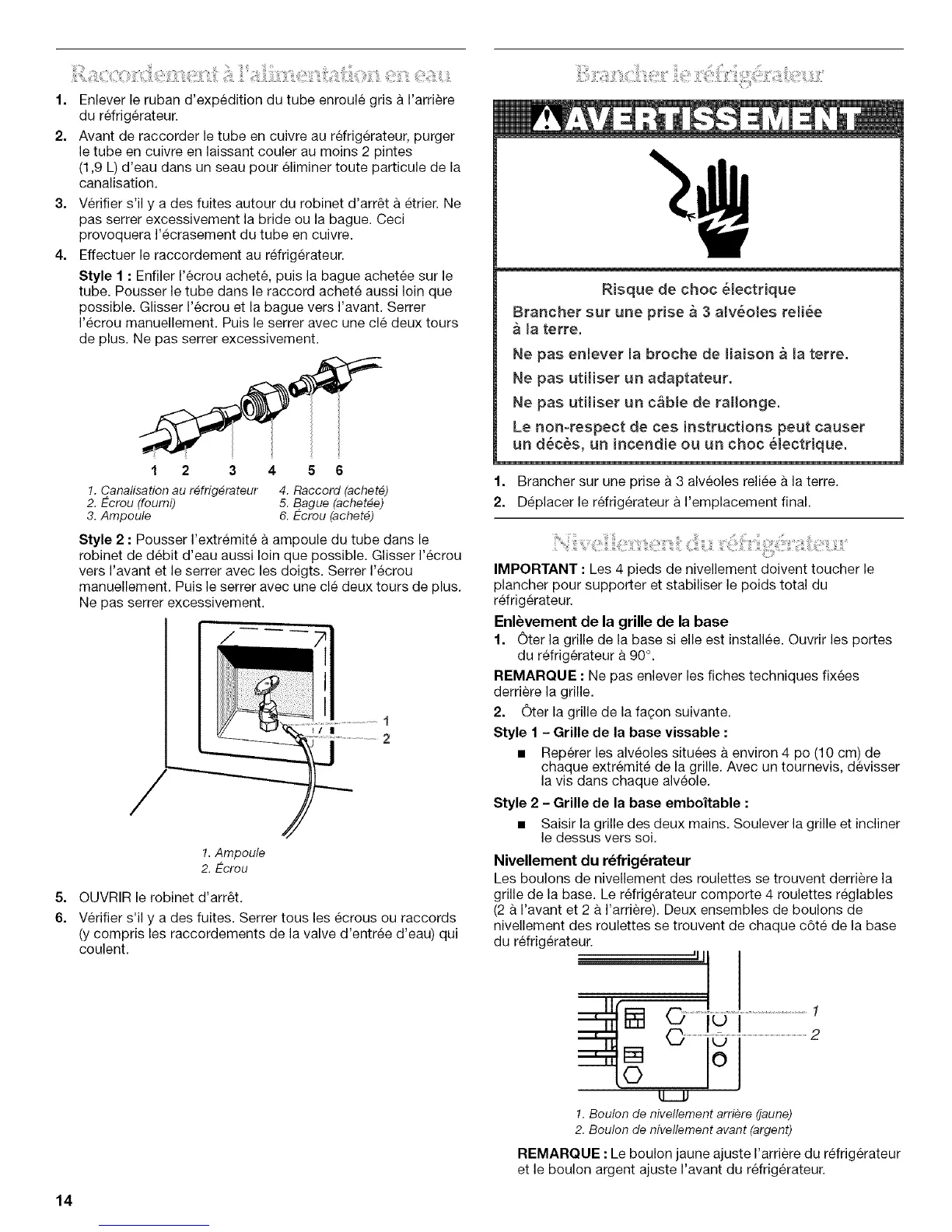Nivellement du r6frig6rateur