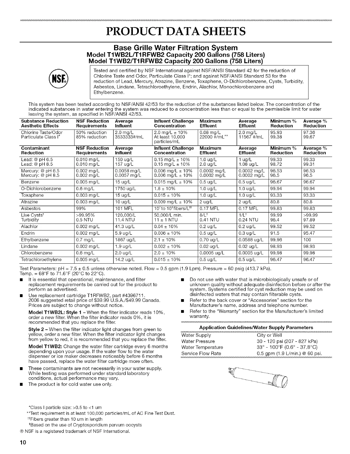 Contaminant NSF Reduction Average Influent Challenge Maximum Average Minimum % Average %