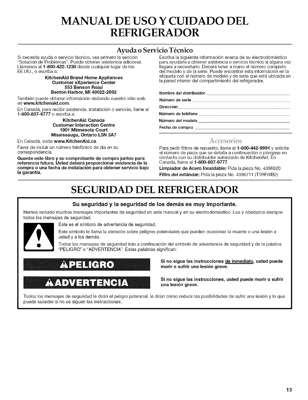 En Canada, para recibir asistencia, instalaci6n o servicio, Ilame al