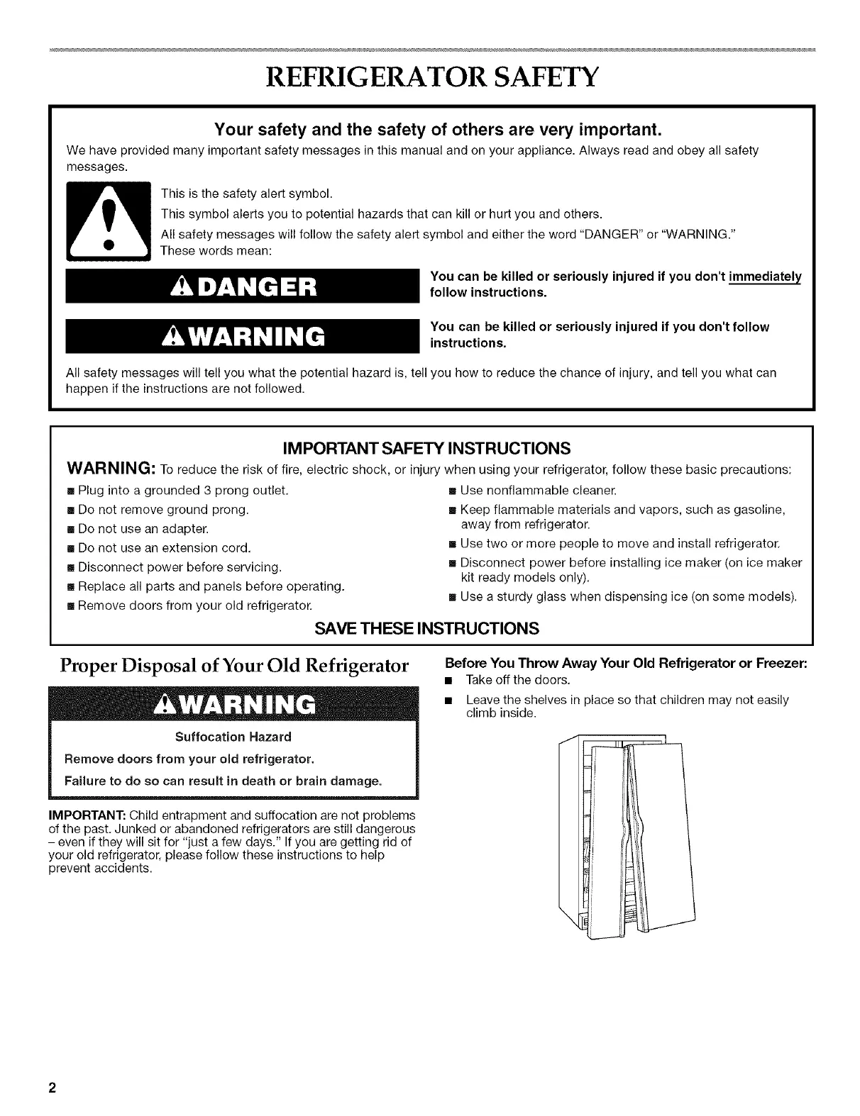 WARNING: To reduce the risk of fire, electric shock, or injury when using your refrigerator, follow these basic precautions: