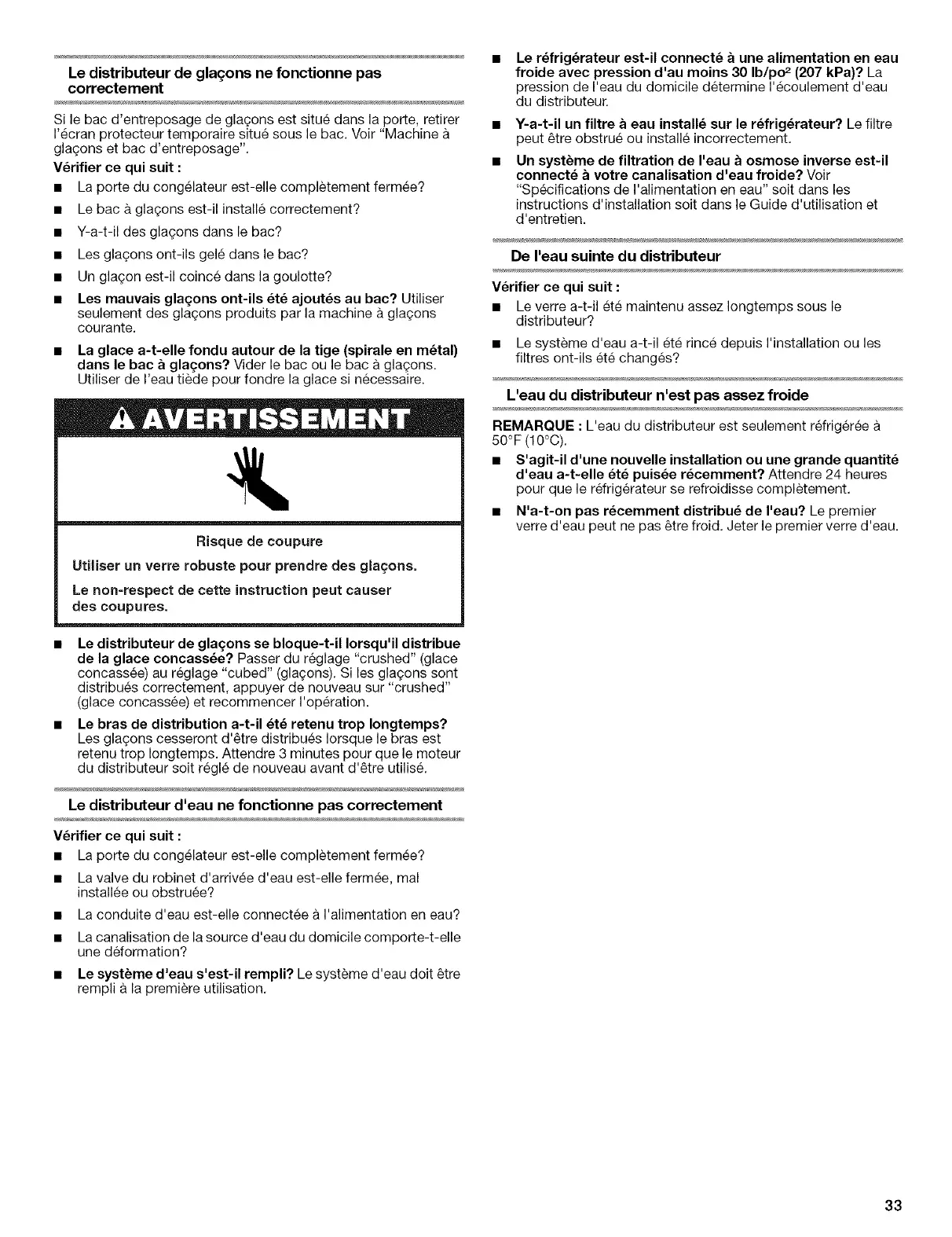 • Le distributeur de glaqons se bloque-t-il Iorsqu'il distribue