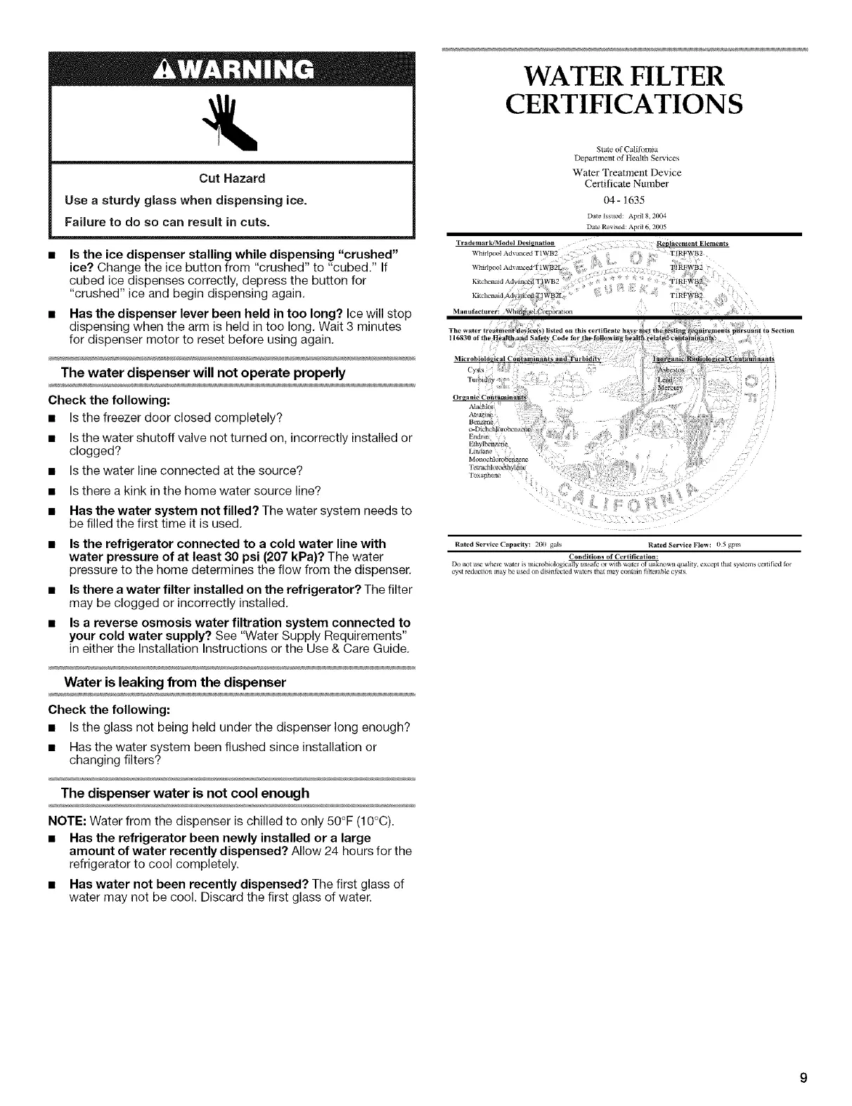 NOTE: Water from the dispenser is chilled to only 50°F (10°C).