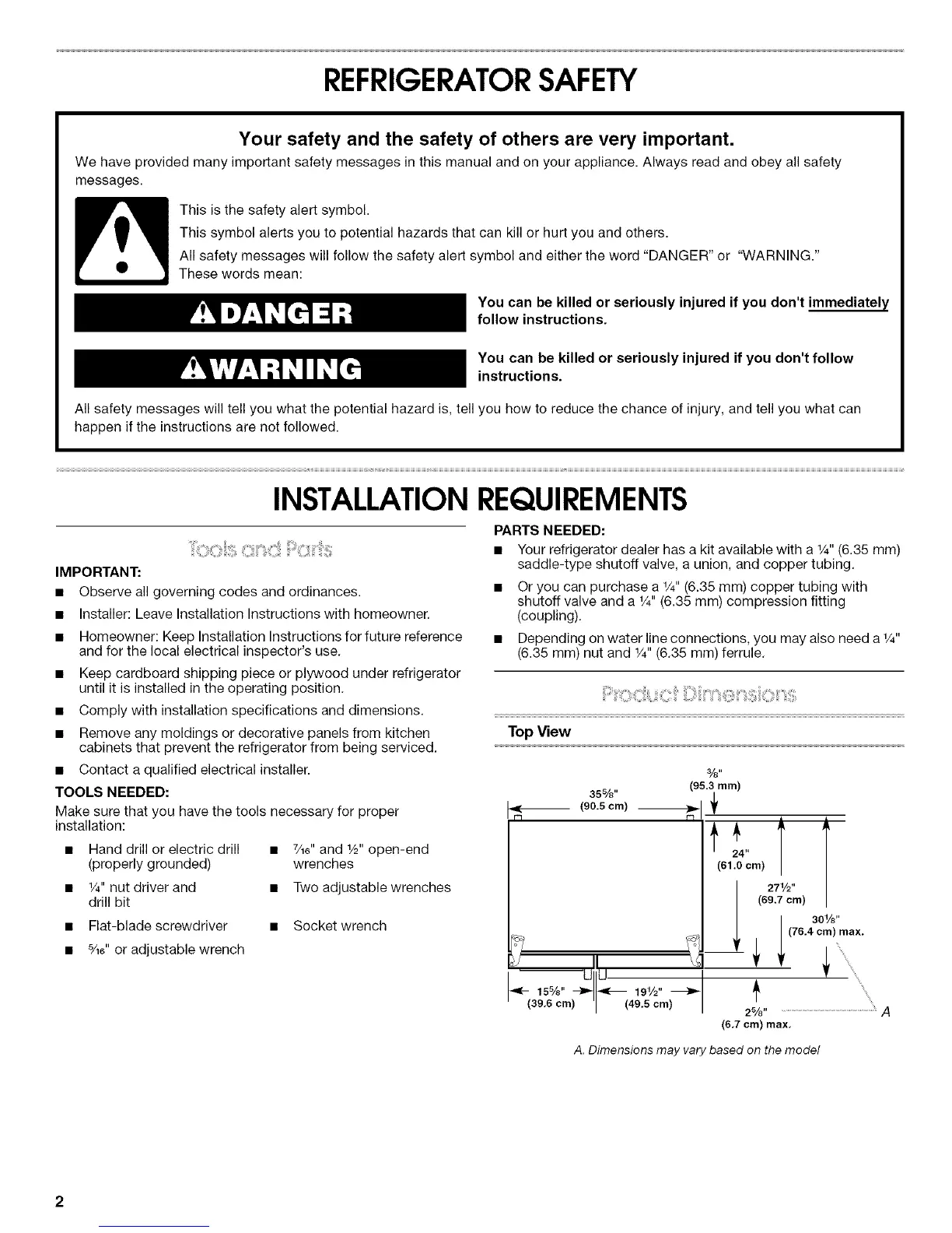 • Your refrigerator dealer has a kit available with a 1/4"(6.35 mm)