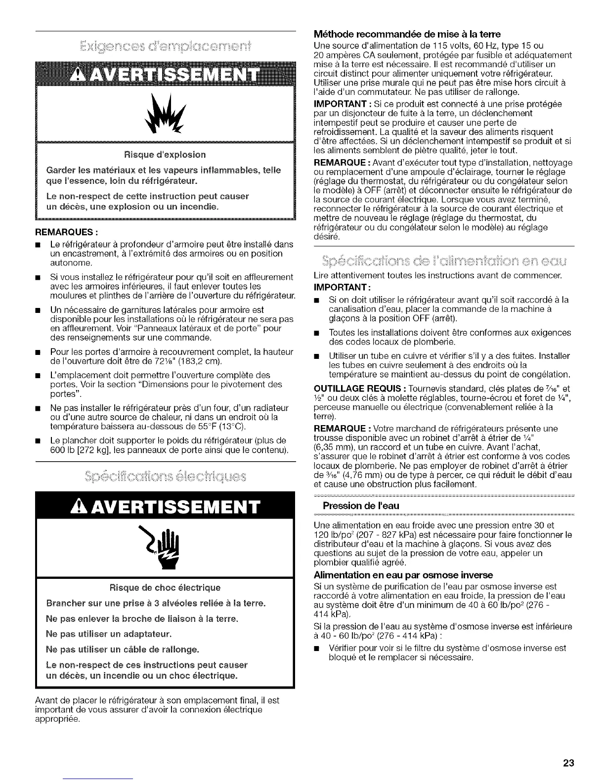 • Le plancher dolt supporter le poids du refrigerateur (plus de
