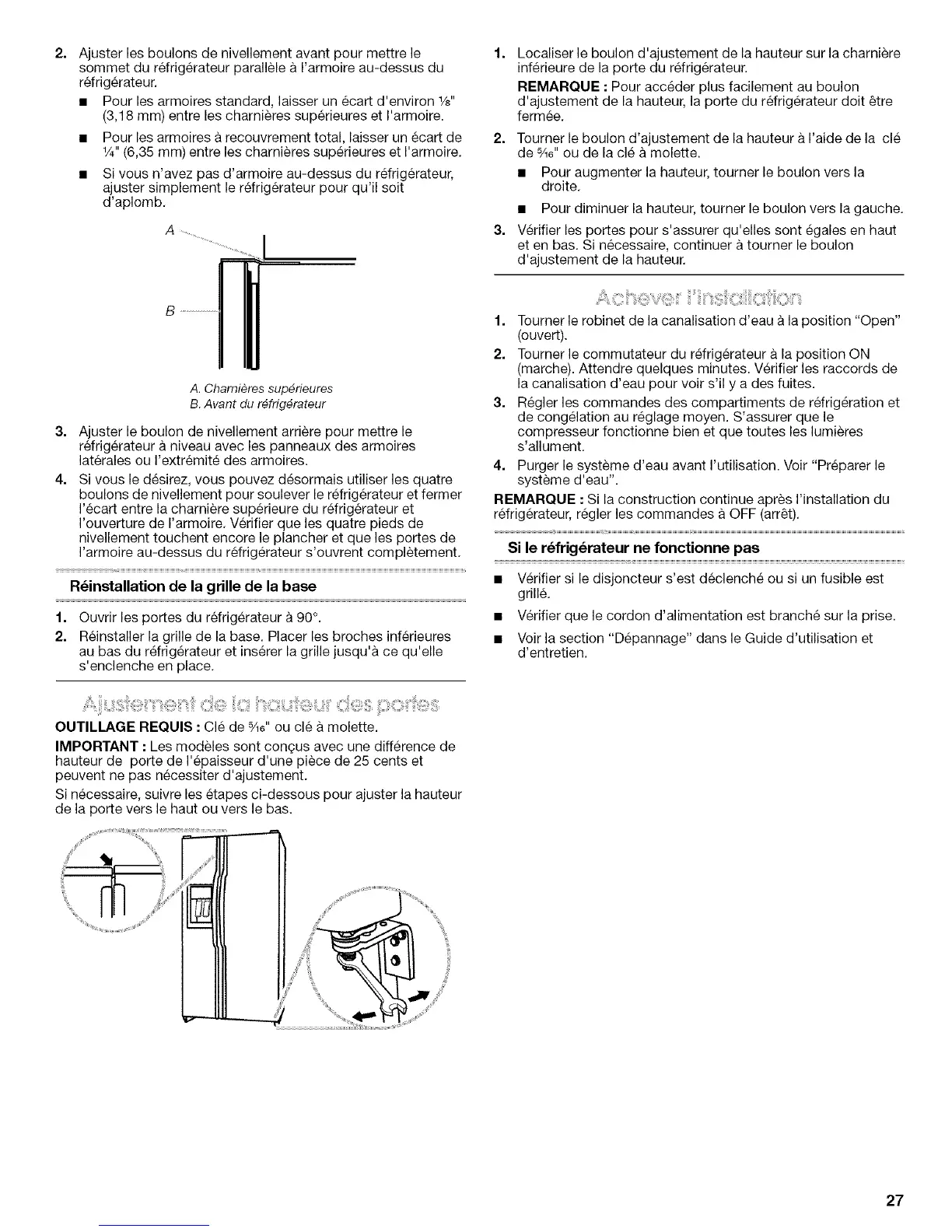 d'ajustement de la hauteur, la porte du refrigerateur dolt _tre