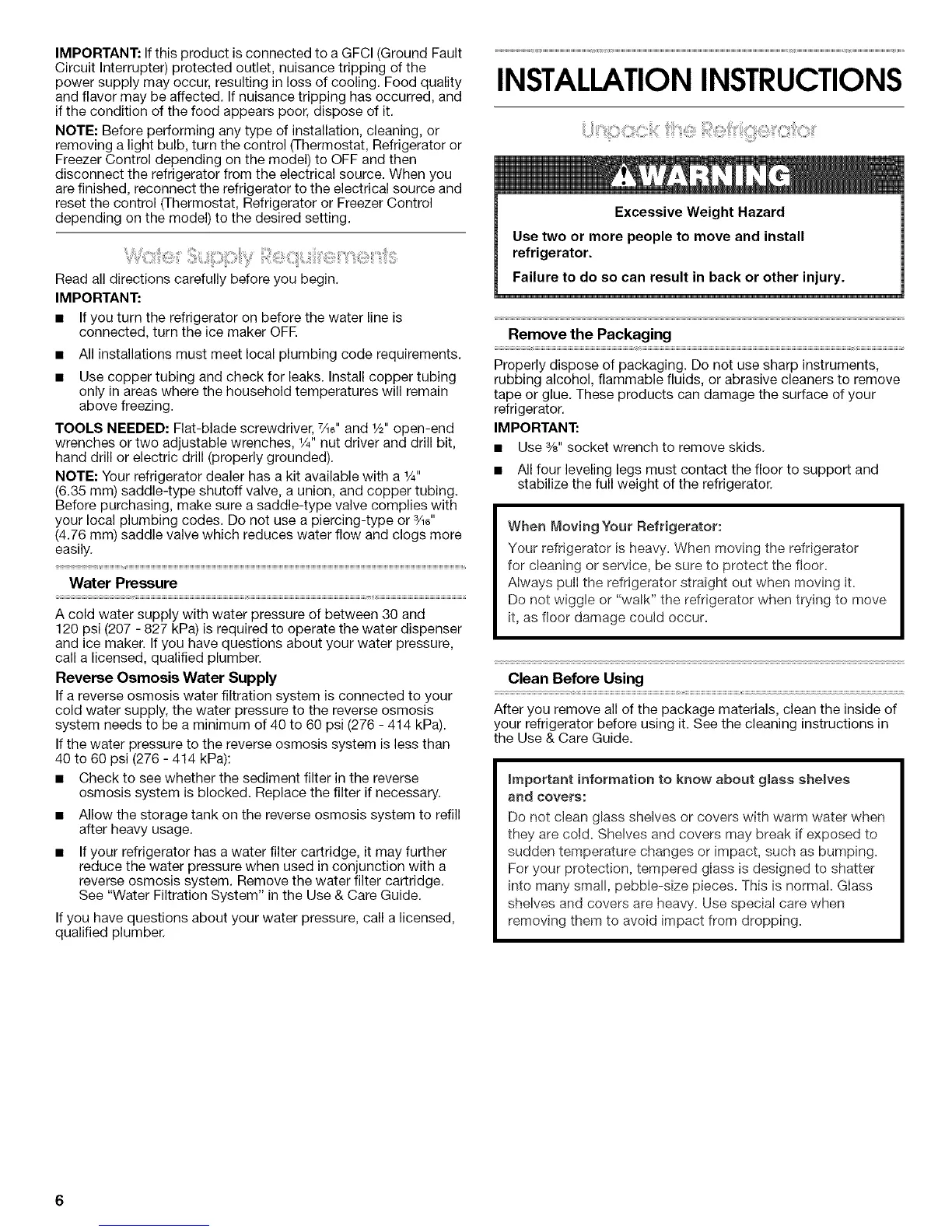 and ice maker. If you have questions about your water pressure,