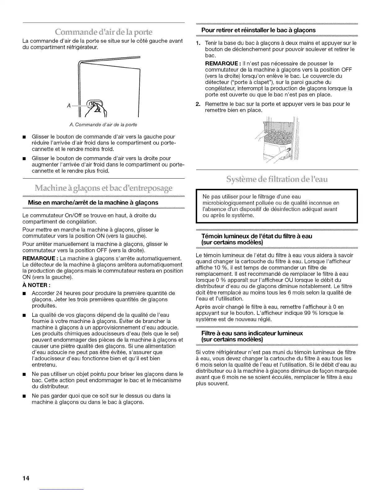 distributeur d'eau ou de glagons diminue notablement. Le filtre