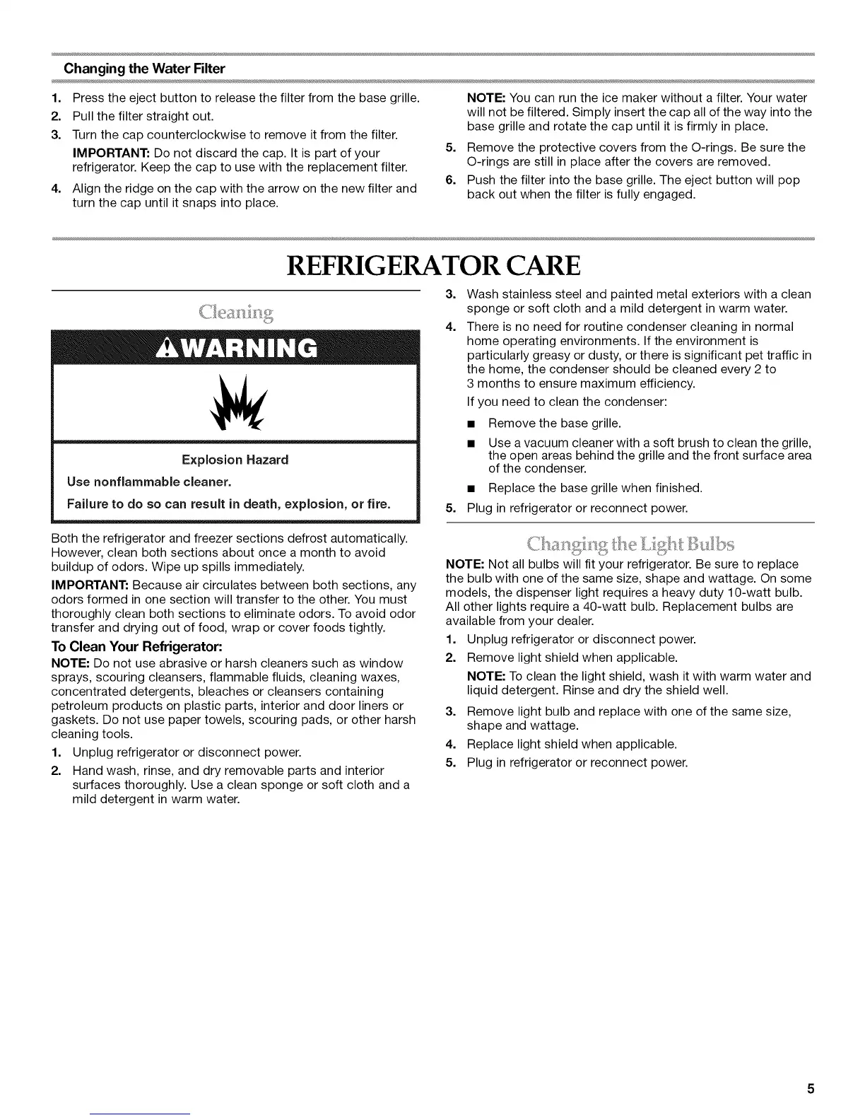 models, the dispenser light requires a heavy duty 1C-watt bulb.