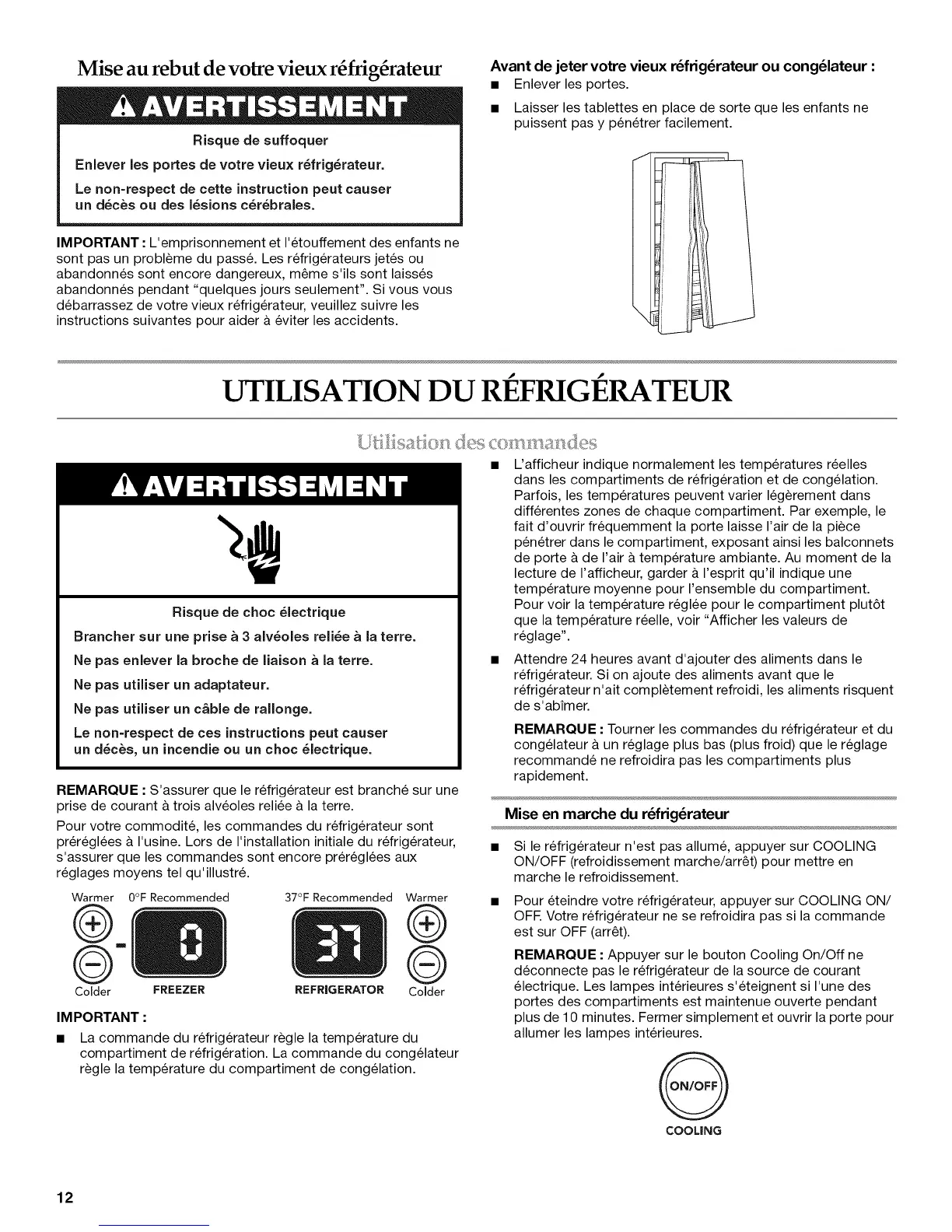 UTILISATION DU REFRIGERATEUR