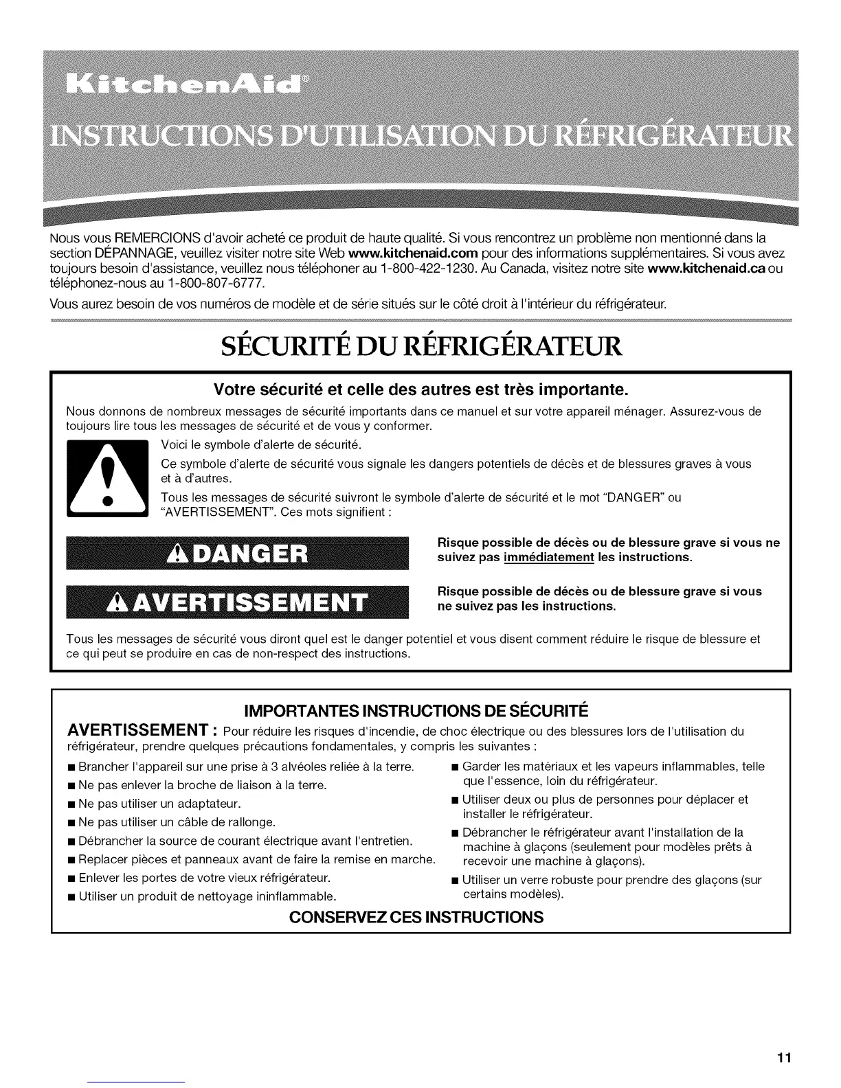 section DI_PANNAGE, veuillez visiter notre site Web www.kitchenaid.com pour des informations supplementaires. Si vous avez